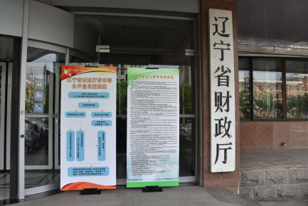 “辽宁省优化营商环境条例”制作成展板在厅机关正门前摆放