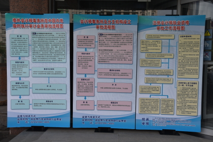 “444咖啡 信访接待流程图”制作成展板在厅机关一楼摆放
