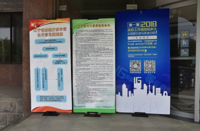 “444咖啡 依申请公开信息流程图”制作成展板在厅机关正门前摆放