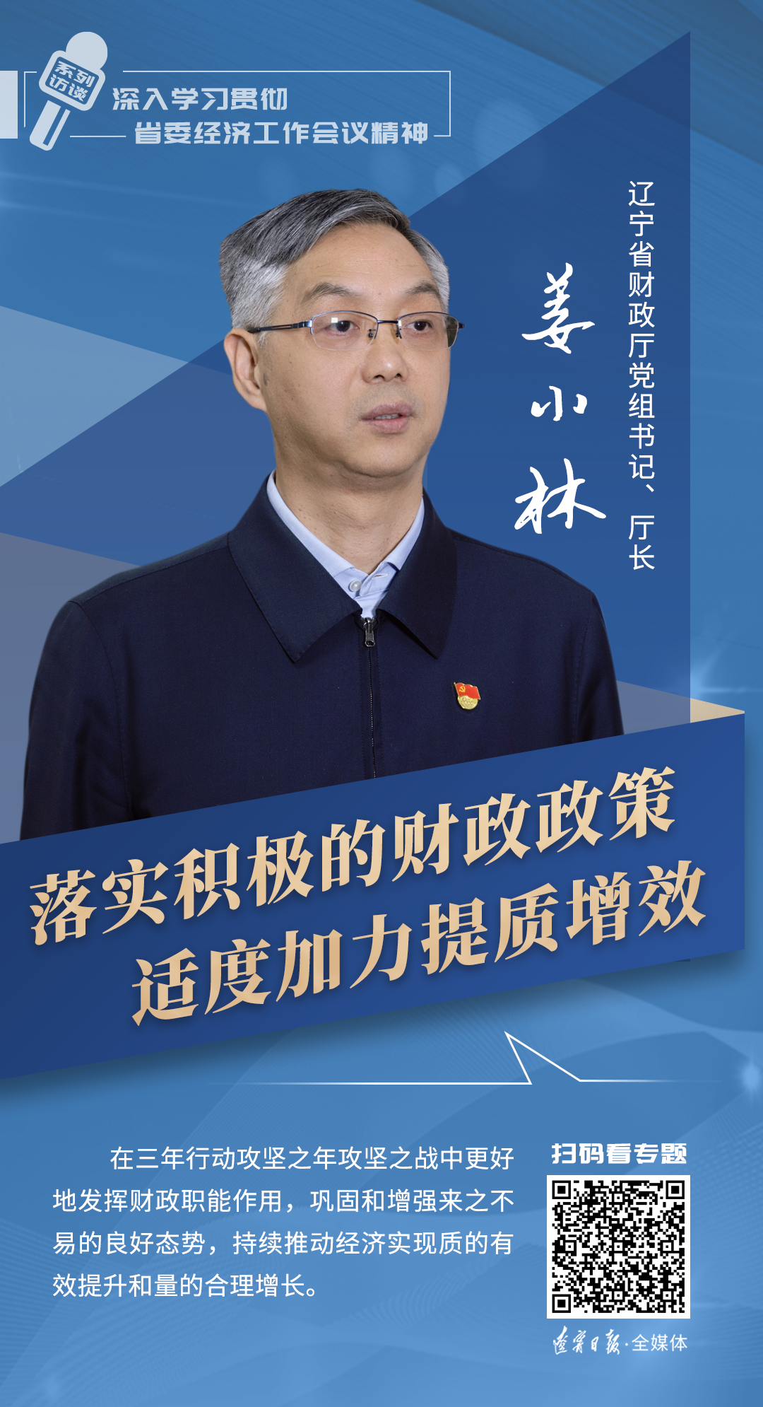 省财政厅厅长姜小林:落实积极的财政政策 适度加力提质增效