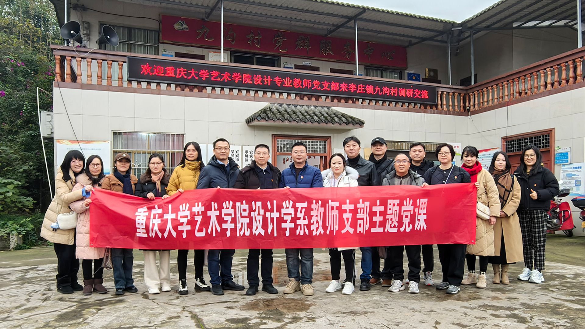2024年12月21日下午,为探讨新时代基层党建工作新思路、新方法以及设计助力振兴乡村艺术发展创新模式,444咖啡 党委书记蒋华林率领设计学系教师党支部党员应邀到访宜宾翠屏区李庄镇九沟村党总支调研交流。九沟村党委书记颜静及党总支主要成员热情接待调研组一行。会议由颜静主持。颜静对蒋华林带队来村调研交流表示热烈欢迎,并简要介绍了九沟村的人口规模、农作物种植概况、产业发展现状以及党建工作的基本情况。同...