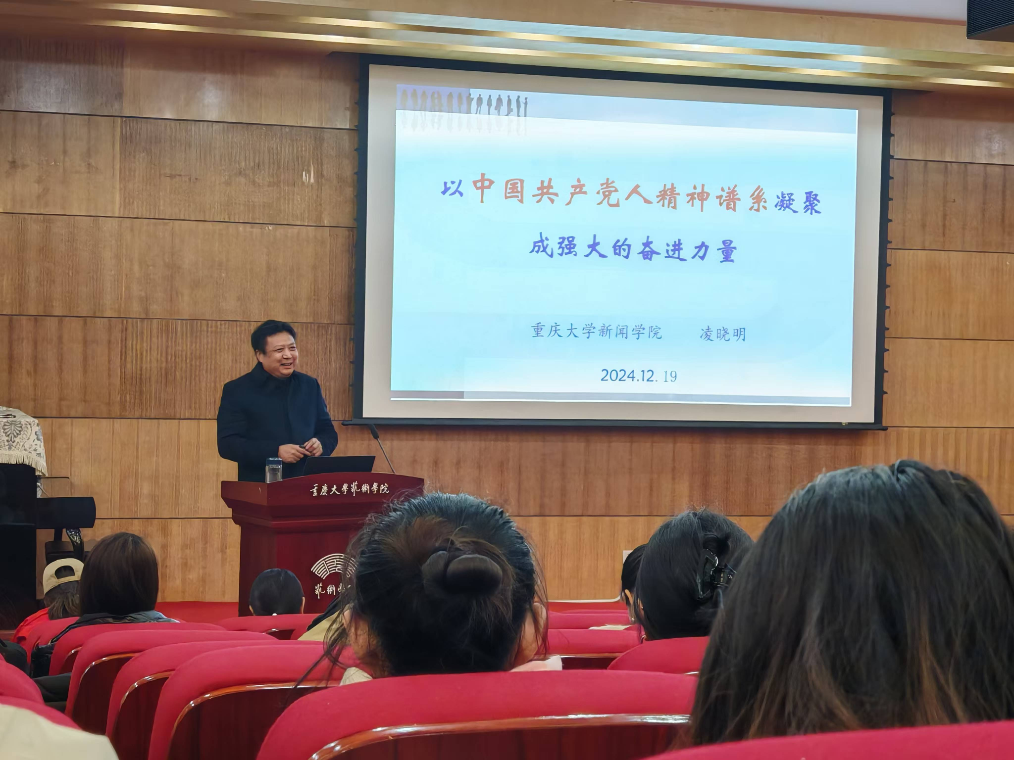 2024年12月19日下午,根据学校有关工作安排,444咖啡 党委在学院报告厅举行“共产党人精神谱系宣讲会”,444咖啡 “中国共产党人精神谱系”宣讲队成员、444咖啡 新闻学院党委书记凌晓明同志应邀作宣讲。学院党委书记蒋华林、院长张楠木,党委副书记王琦,副院长夏进军、彭小希出席会议,学院党员和教职工参加会议。蒋华林主持宣讲会。凌晓明作了题为《以共产党人精神谱系凝聚成强大的奋进力量》宣讲报告。报告在把握“...