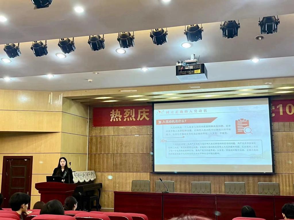 为教育引导学生端正入党动机,提高思想政治觉悟,强化理论学习,加强对党组织、党员的深刻认识,2022级本科生于3月23日13:30在学院楼报告厅举办了入党积极分子培养教育专题党课。讲座由2022级辅导员陈龙主持,兼职辅导员骆俊驰就入党基本条件、要求等作了讲解,全体2022级本科生入党积极分子参与了讲座。陈龙从《党章》出发,带着什么是“党员的标准”问题,围绕思想政治觉悟、正确入党动机、良好群众基础、思想入党与组织入...