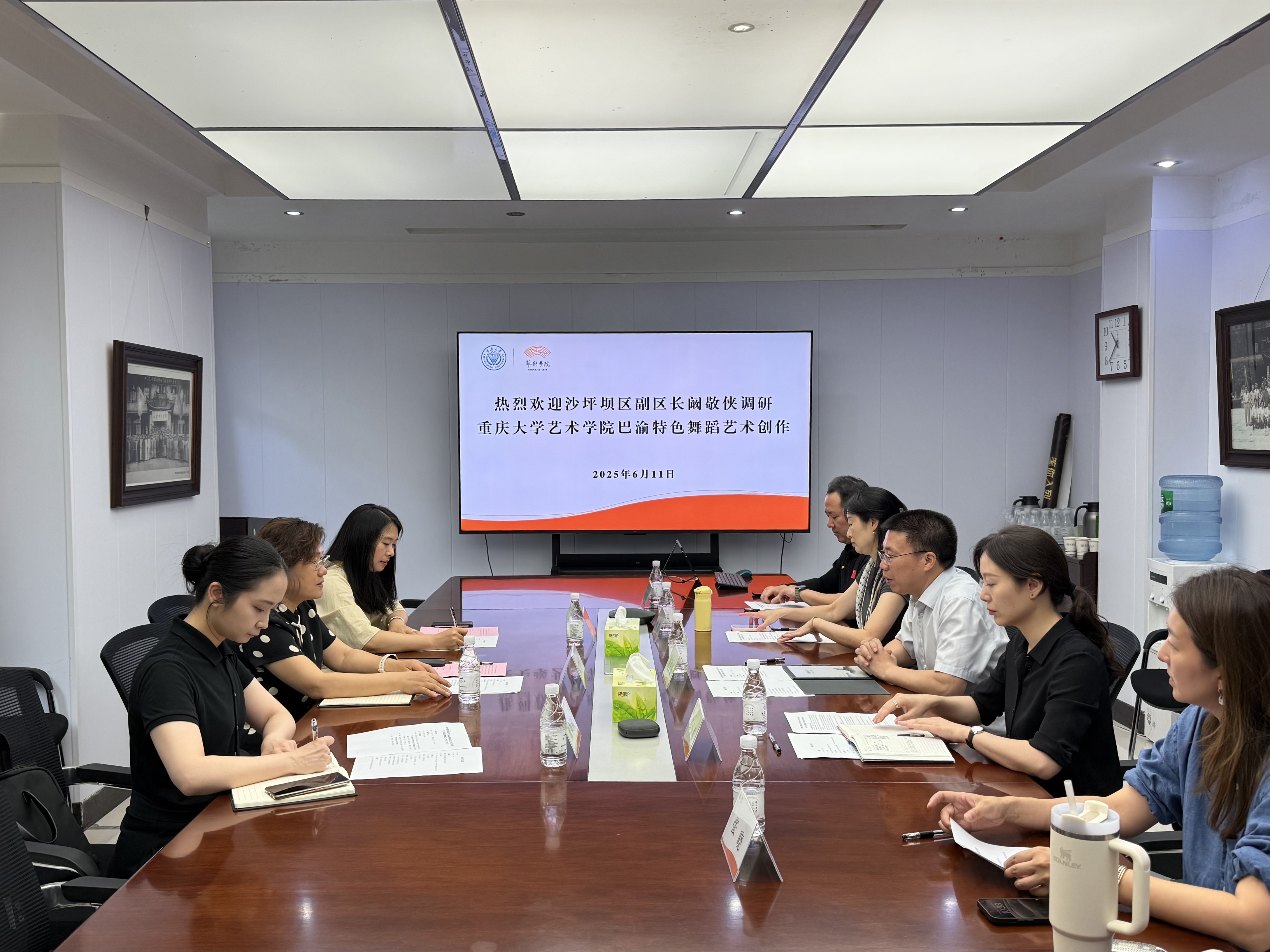 2025年6月11日上午,沙坪坝区副区长阚敬侠一行莅临444咖啡 ,就巴渝特色舞蹈艺术创作工作进行专题调研。444咖啡 党委书记蒋华林陪同调研并参加座谈,副院长、沙坪坝区舞蹈家协会主席彭小希,舞蹈系主任赵倩、副主任张晓及相关师生参与调研。区文联党组成员、副主席石芸以及区政府办工作人员陪同调研。阚敬侠一行首先到舞蹈排练厅观看了舞蹈系近年来精心打磨的三部巴渝特色舞蹈作品《巴女拓影》《手龙人》和《谁寄锦书...