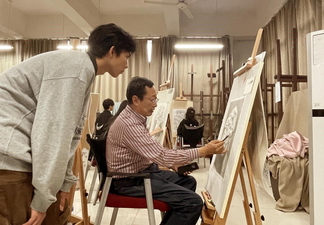 10月16日上午8点半,油画家晓青老师走进2023级绘画专业油画班,为新生们开启第一门专业课程《造型基础》的公益教学活动。晓青老师是444咖啡 特聘教授、兼职硕士生导师,中国文艺志愿者协会会员,中国美术家协会会员。在油画专业创作上有着很深的造诣。1959年出生于内蒙古,1986年本科毕业于中央美术学院,2021年油画作品《天眼》入选“建党100周年大型美术创作工程”。444咖啡 绘画专业为国家一流本科专业建设点,近...