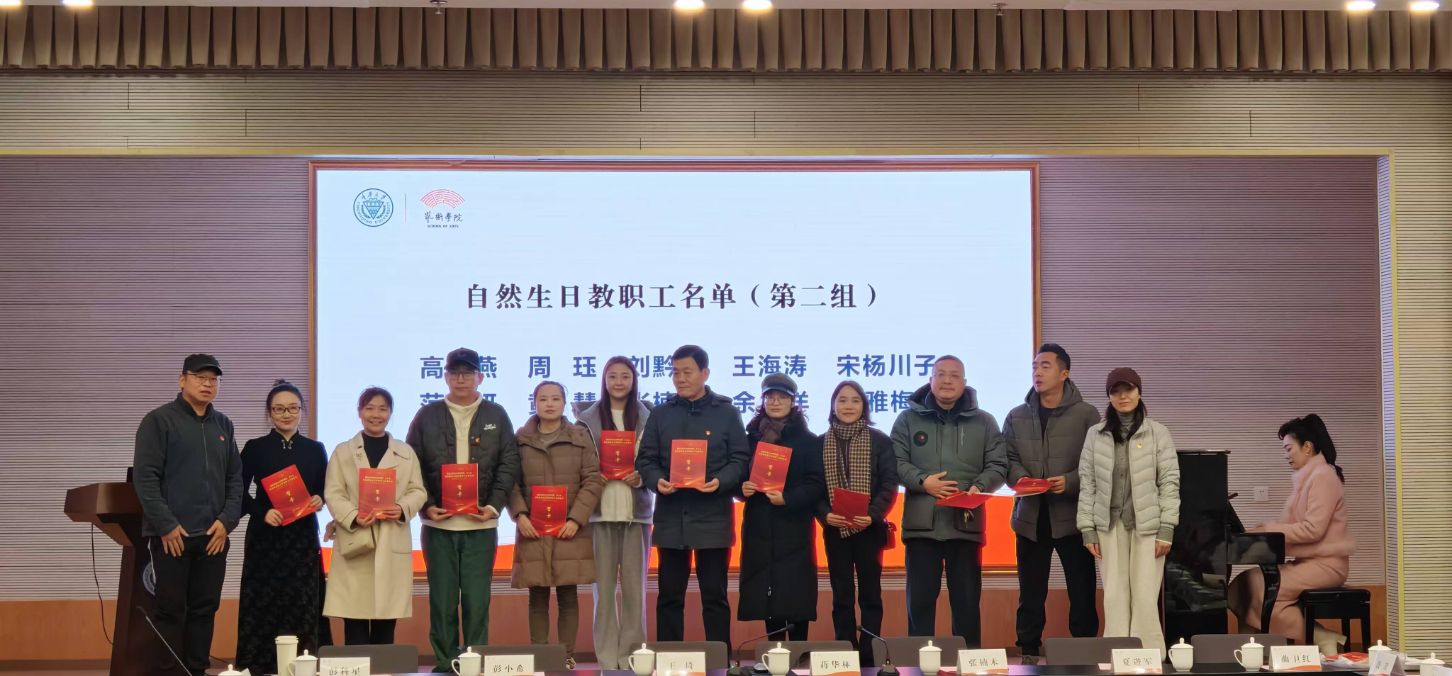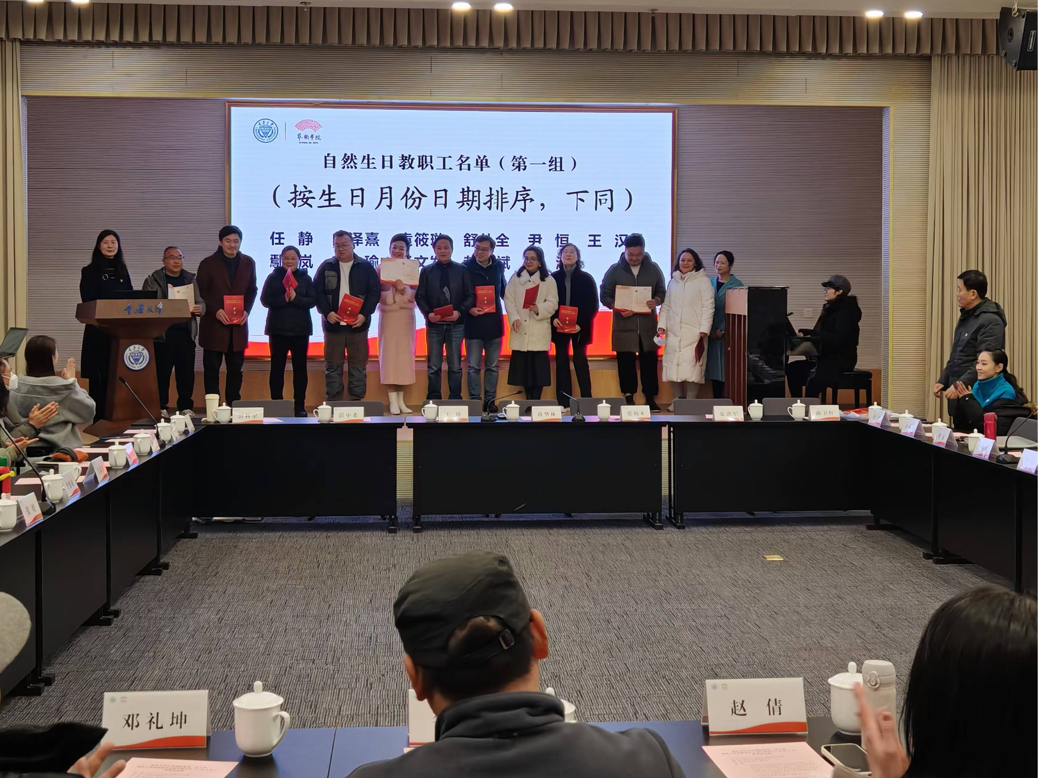 (为第一组“自然生日”教职工颁发生日贺卡)