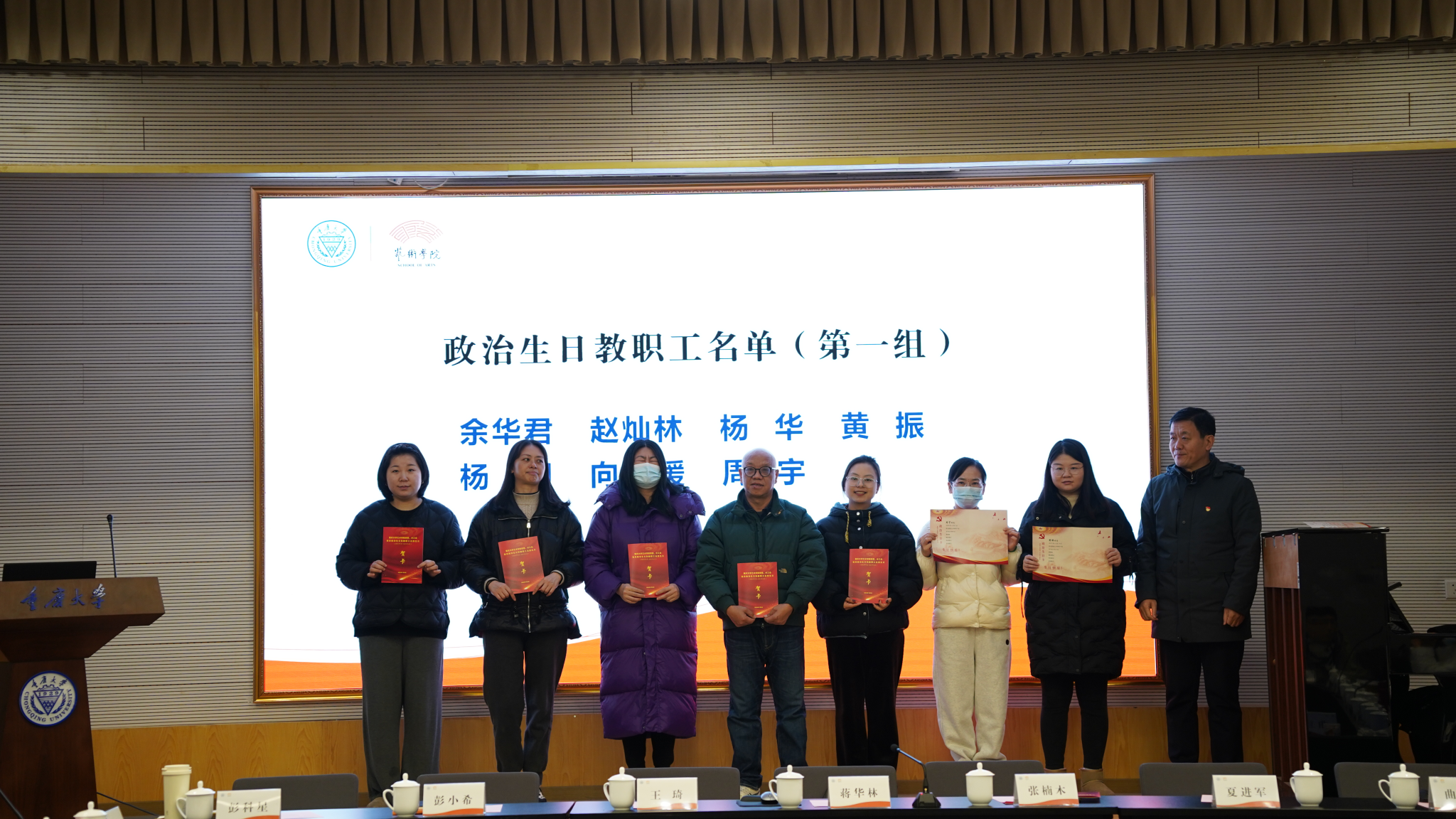 (为第一组“政治生日”党员教职工颁发生日贺卡)