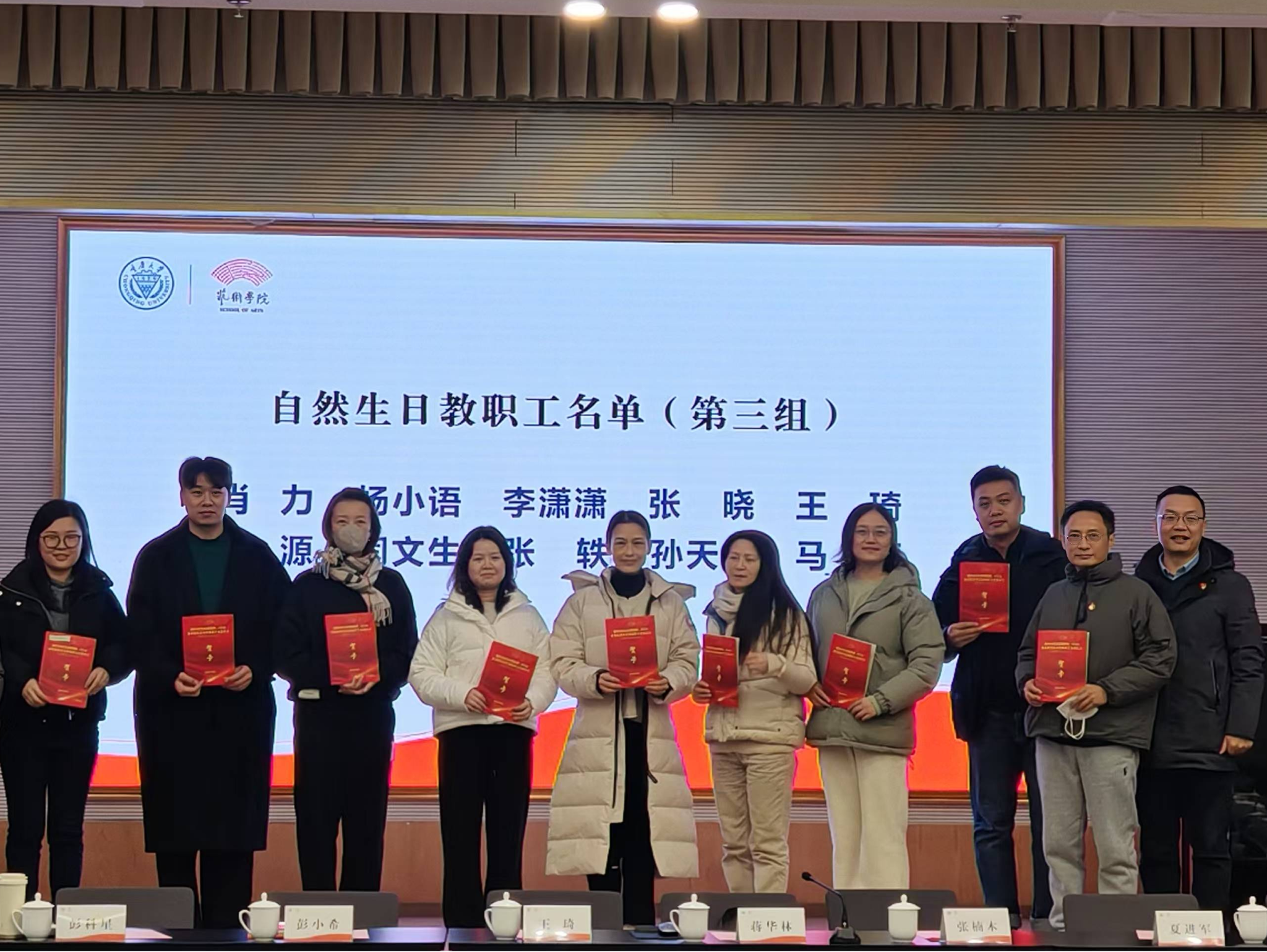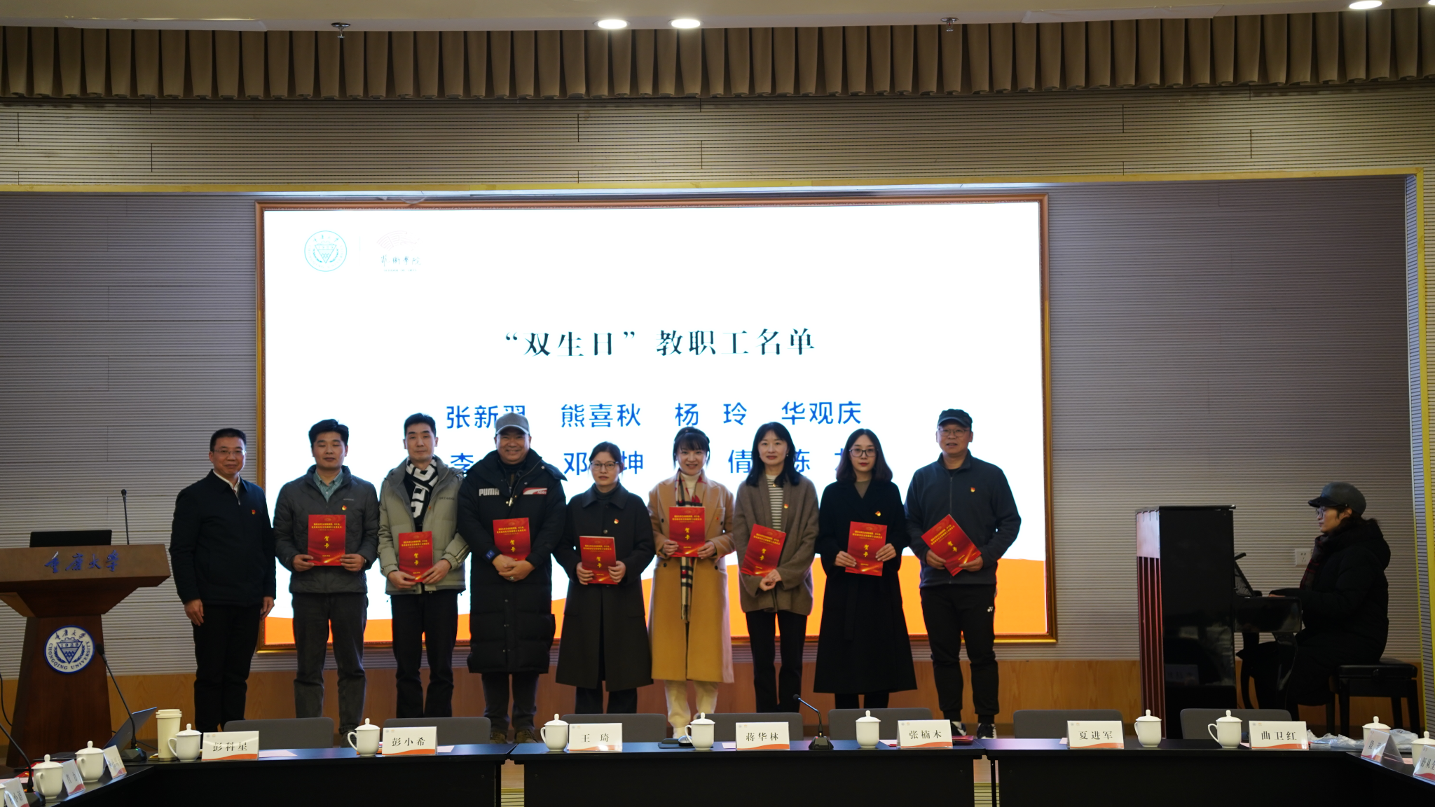 张楠木宣读了“双生会”教职工名单,院领导、党委委员和分工会负责人为大家颁发了生日贺卡。王琦带领全体党员重温入党誓词。