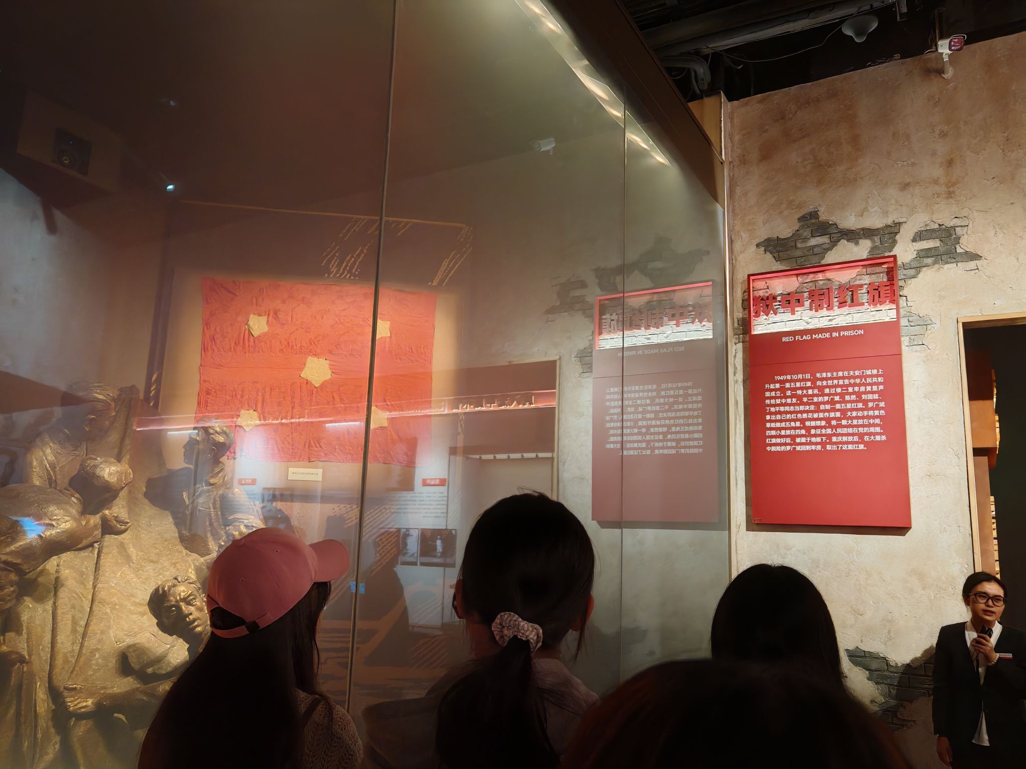 步入歌乐山革命纪念馆,数字化展陈技术将历史场景立体还原。从《红岩》作者罗广斌用牢房草纸写就的《狱中八条》,到杨汉秀烈士绣着“为真理而斗争”的旗袍;从渣滓洞监狱的铁窗镣铐,到《挺进报》油印机的斑驳印记,每一件文物都在诉说信仰的力量。在“小萝卜头”宋振中蜡像前,音乐表演专业学生朱润宜驻足良久:“课本上的铅字变成了眼前真实的历史,让我看到革命火种如何在绝境中燎原。”当讲解员展示江姐狱中绣的红旗时,同学们被革命先烈们的坚定信仰、革命风范所感动;当讲解员动情讲述国民党反动派屠杀300余位英烈的惨烈历史时,同学们更加深刻地感受到了新中国来之不易!