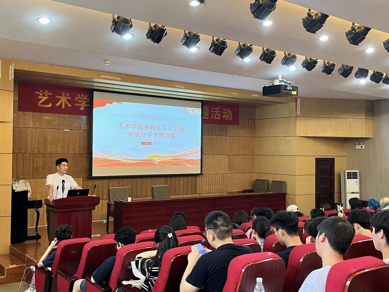 于6月8日下午2:30在学院楼二楼报告厅开展实习实践经验分享专题讲座。会议邀请了 学院2021届设计学专业硕士毕业生、长安汽车智能化研究院杨宇辰作为主讲人。分享会由学院22级辅导员陈龙组织、策划。学院2022级全体本科生及20级部分本科生250余人聆听了讲座。