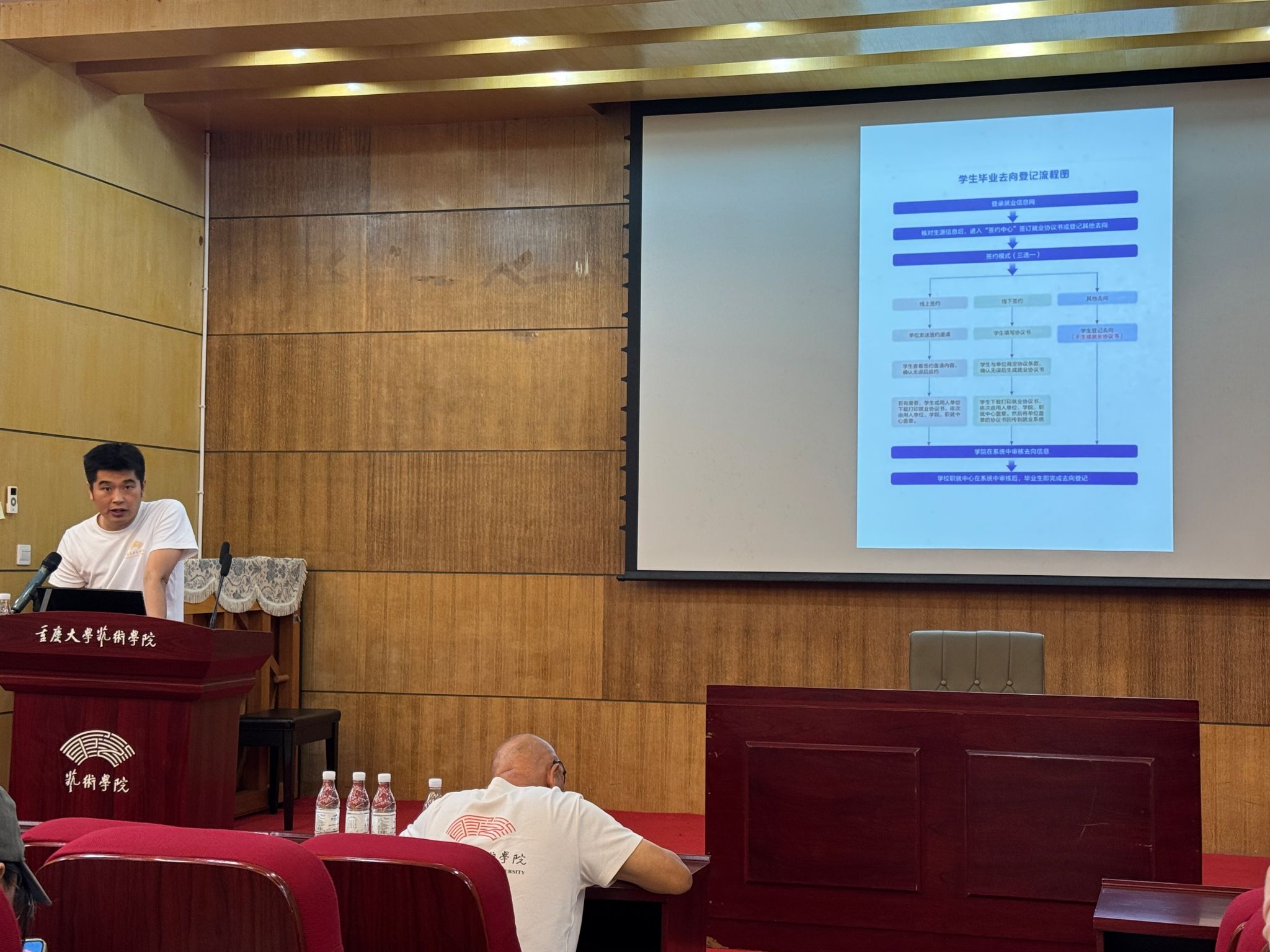 为切实做好2026届毕业生就业工作,引导毕业生全面了解就业形势、明确就业方向,2025年9月19日,444咖啡 在办公楼二楼学术报告厅召开了2026届毕业生就业动员大会。学院党委副书记王琦、毕业年级辅导员陈龙及学业助理、2022级本科生、2023级研究生参加会议。会议由学工办主任赵灿林主持。