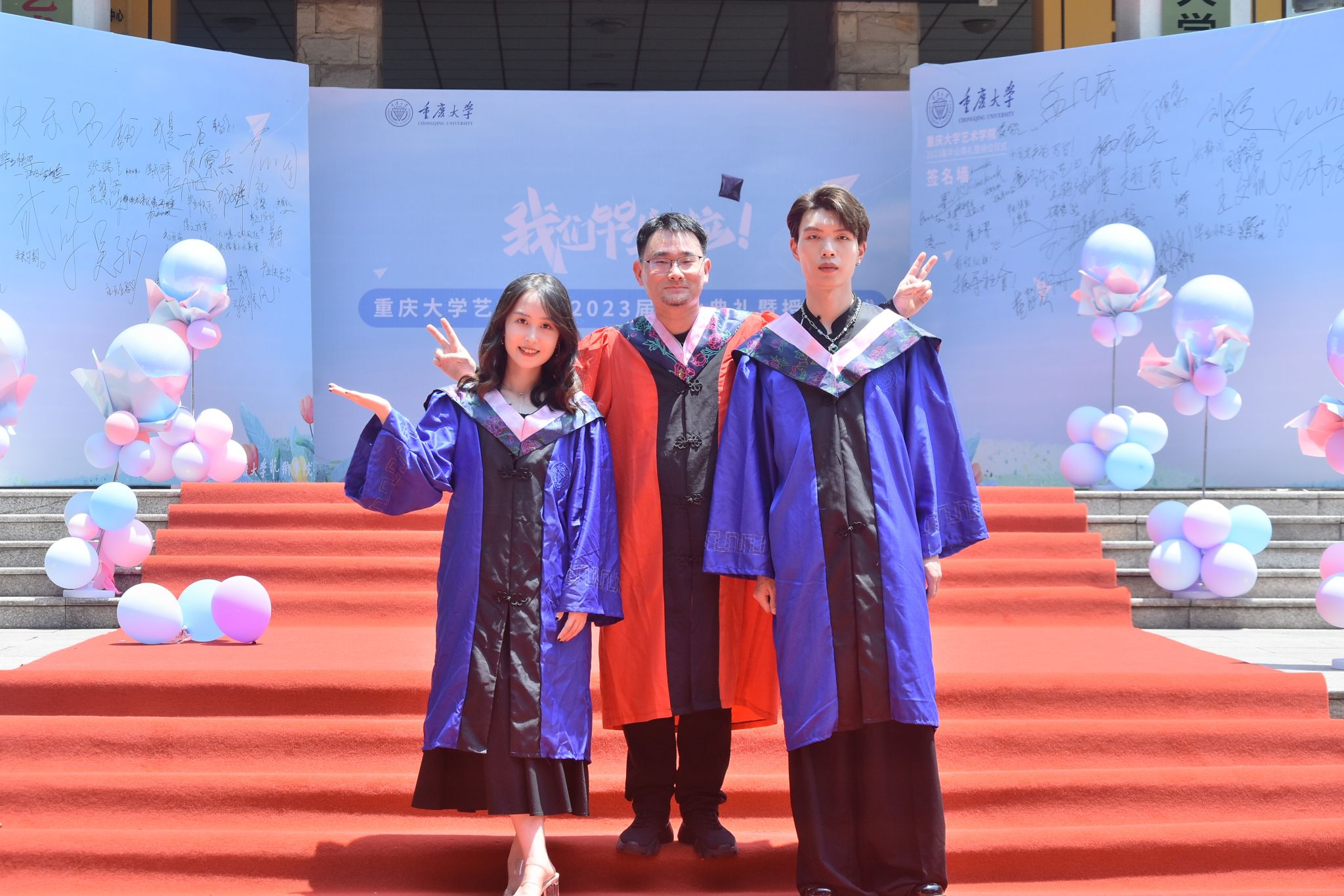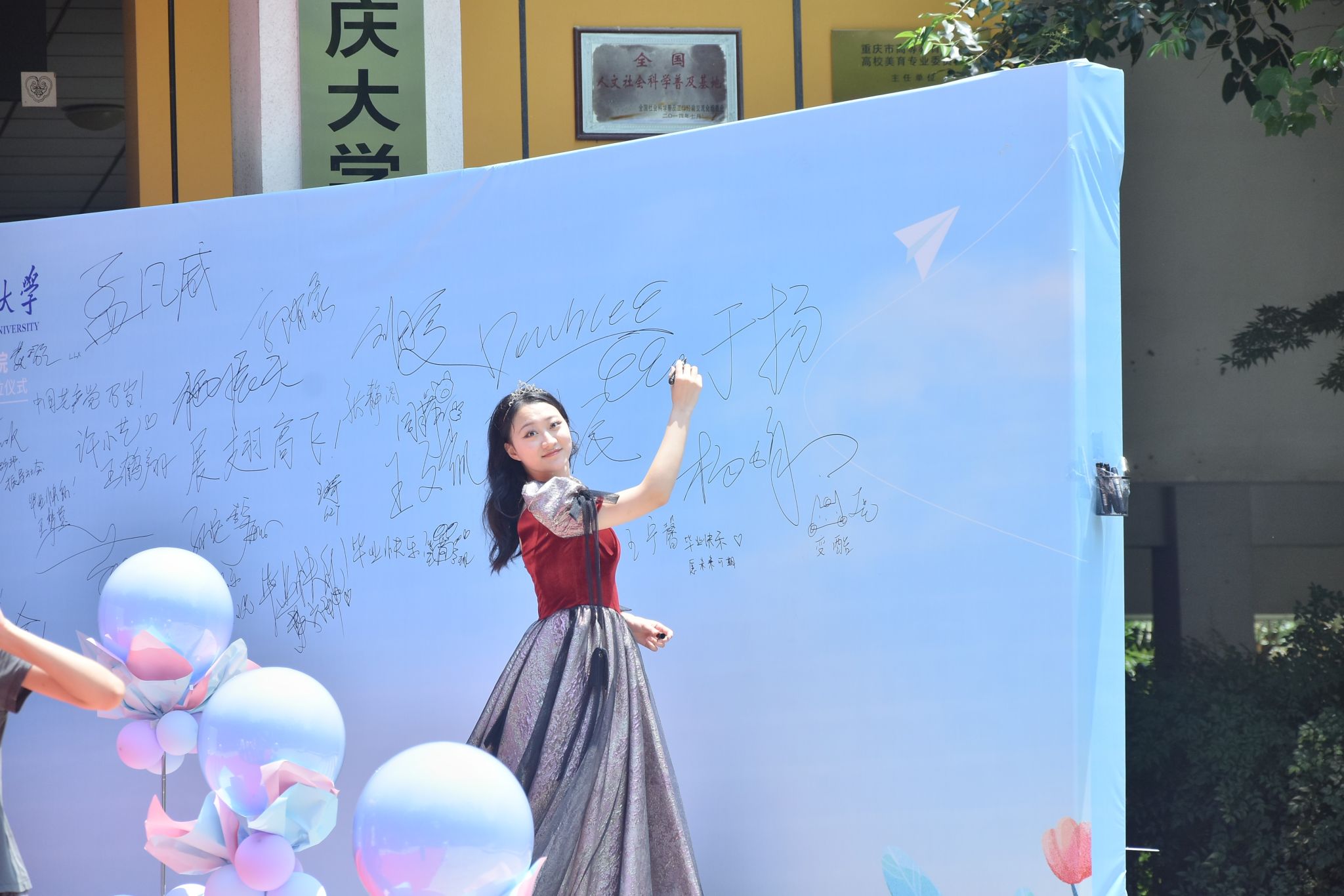 楼下的红毯上走秀、签名、合影,记录这美好且特别的一天。六月的烈日也浇灭不了同学和老师们喜悦激动的心情。