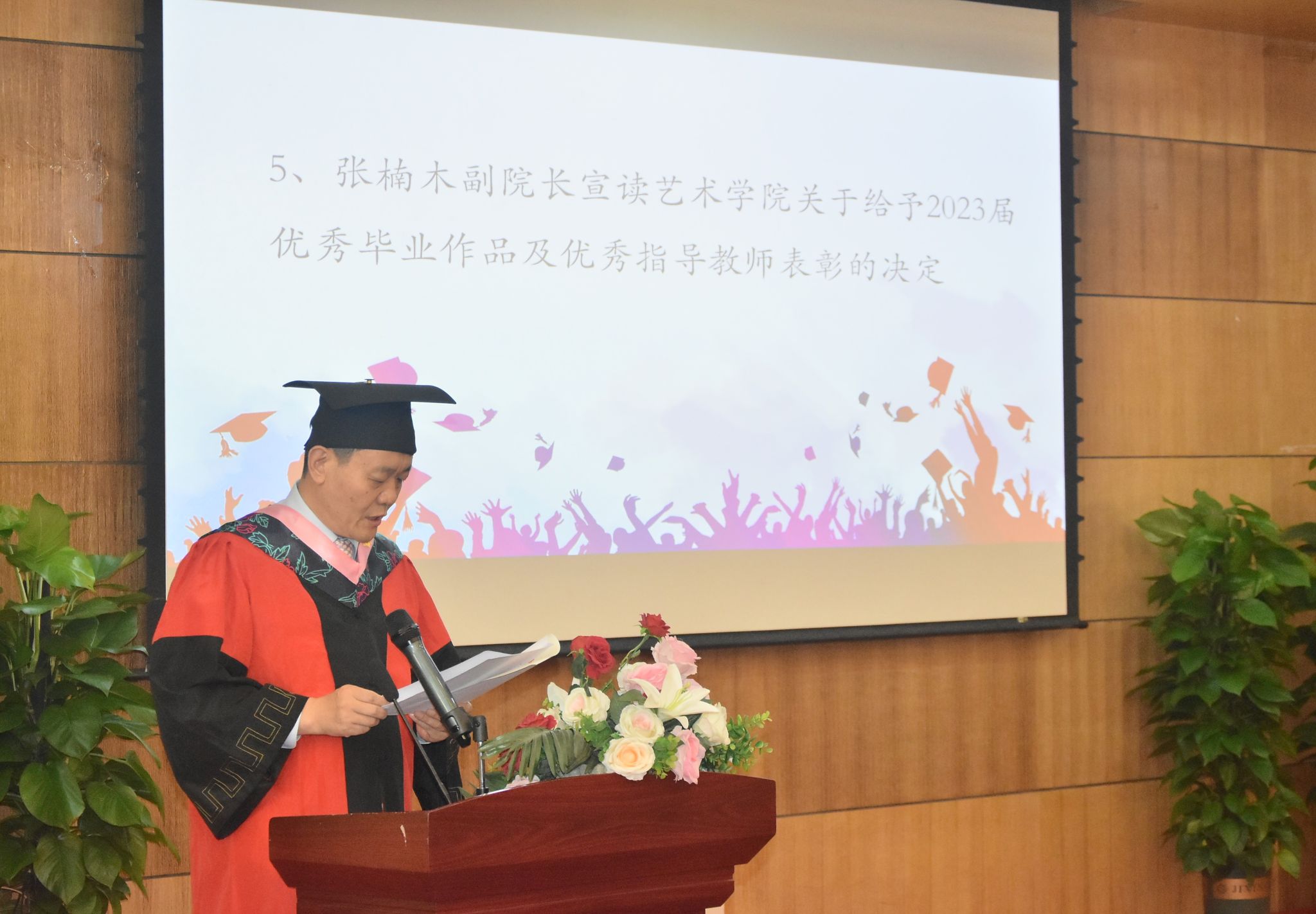 关于给予2023届优秀毕业作品及优秀指导教师的表彰决定,学院领导为获奖师生颁奖。