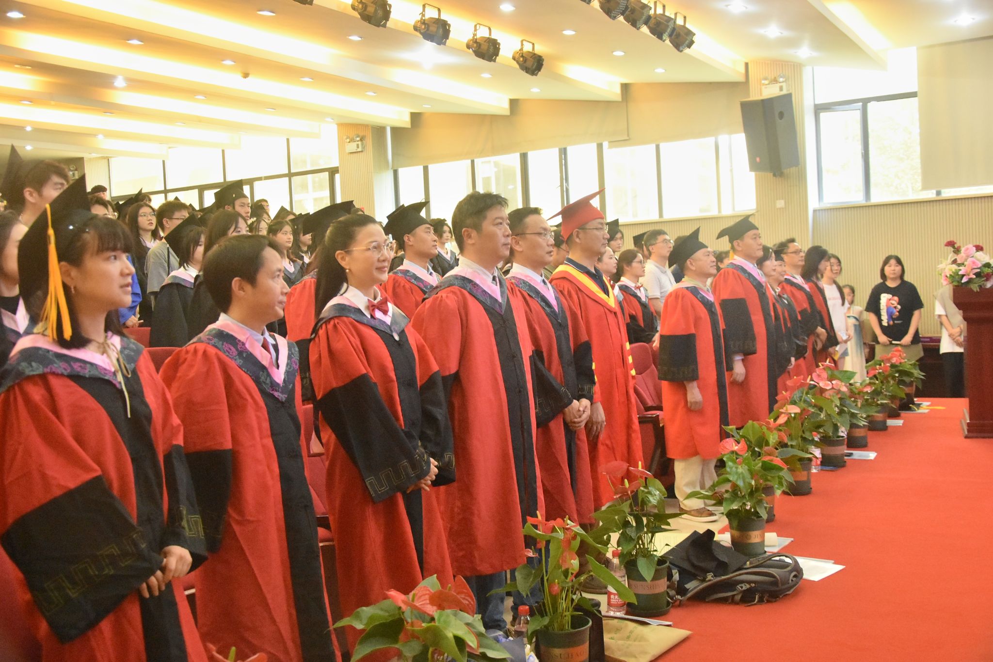 最后,雒三桂寄语2023届毕业生,鼓励同学们要勇于“迎接挑战”,并引用《周易》向大家论证了以积极心态迎接挑战对于人生、理想、事业的重大意义。他指出,君子要厚德载物,要终日乾乾、夕惕若厉,要居上而不骄、在下而不忧,要进德修业、因时而行。他嘱咐同学们:人的一生起起伏伏,平坦而幸福的时候不要忘记前方还有艰难与痛苦;郁闷和痛苦的时候,要知道前方有光明和幸福,在即将开启新的人生征程的时候,要用宽广的心智迎接挑战、拥抱人生。最后,他衷心祝福同学们前程似锦!