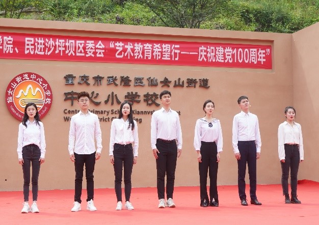 、民进沙坪坝区委会 “艺术教育希望行——庆祝建党100周年”活动在重庆市武隆区仙女山街道中心小学校开展。