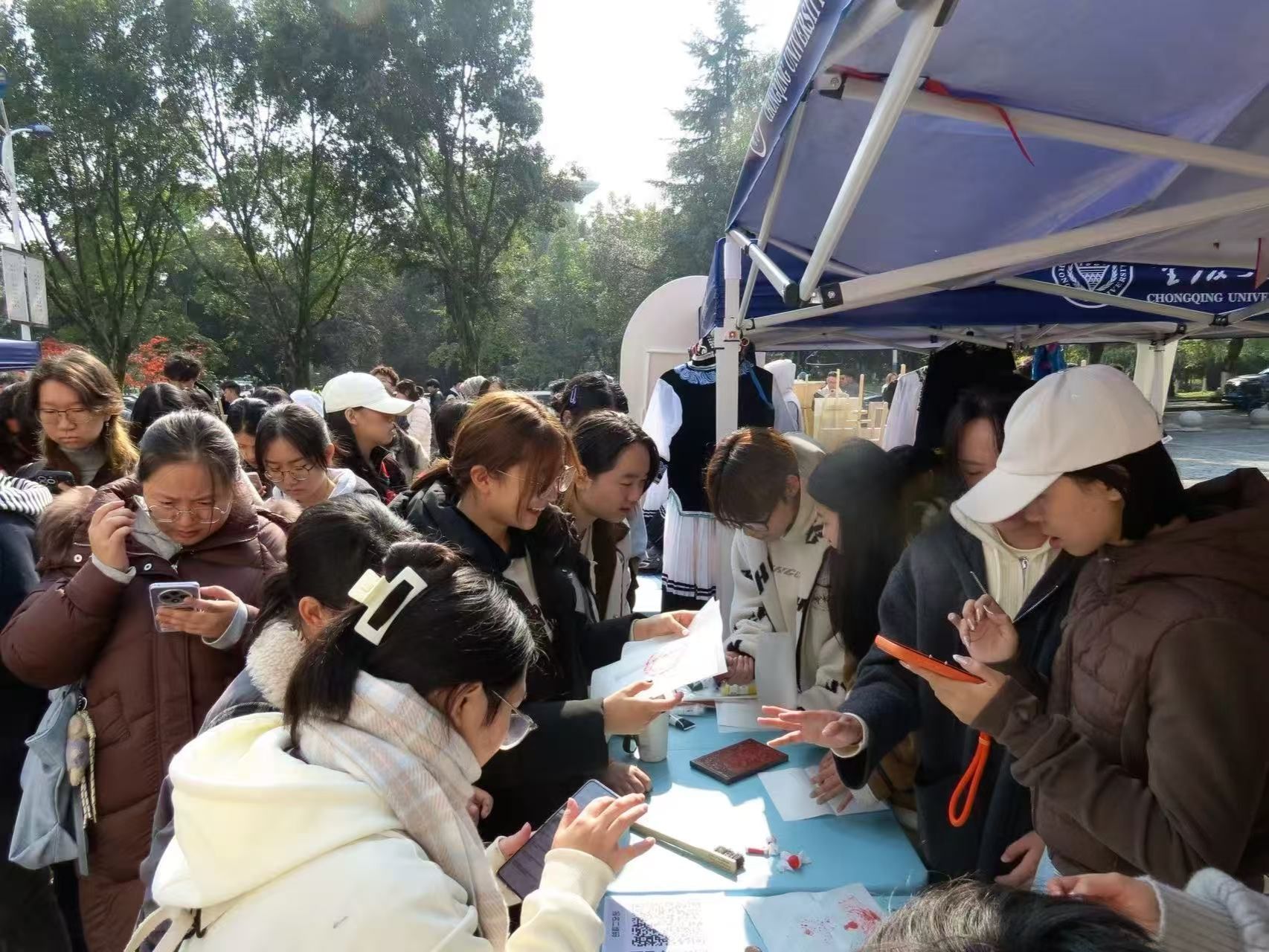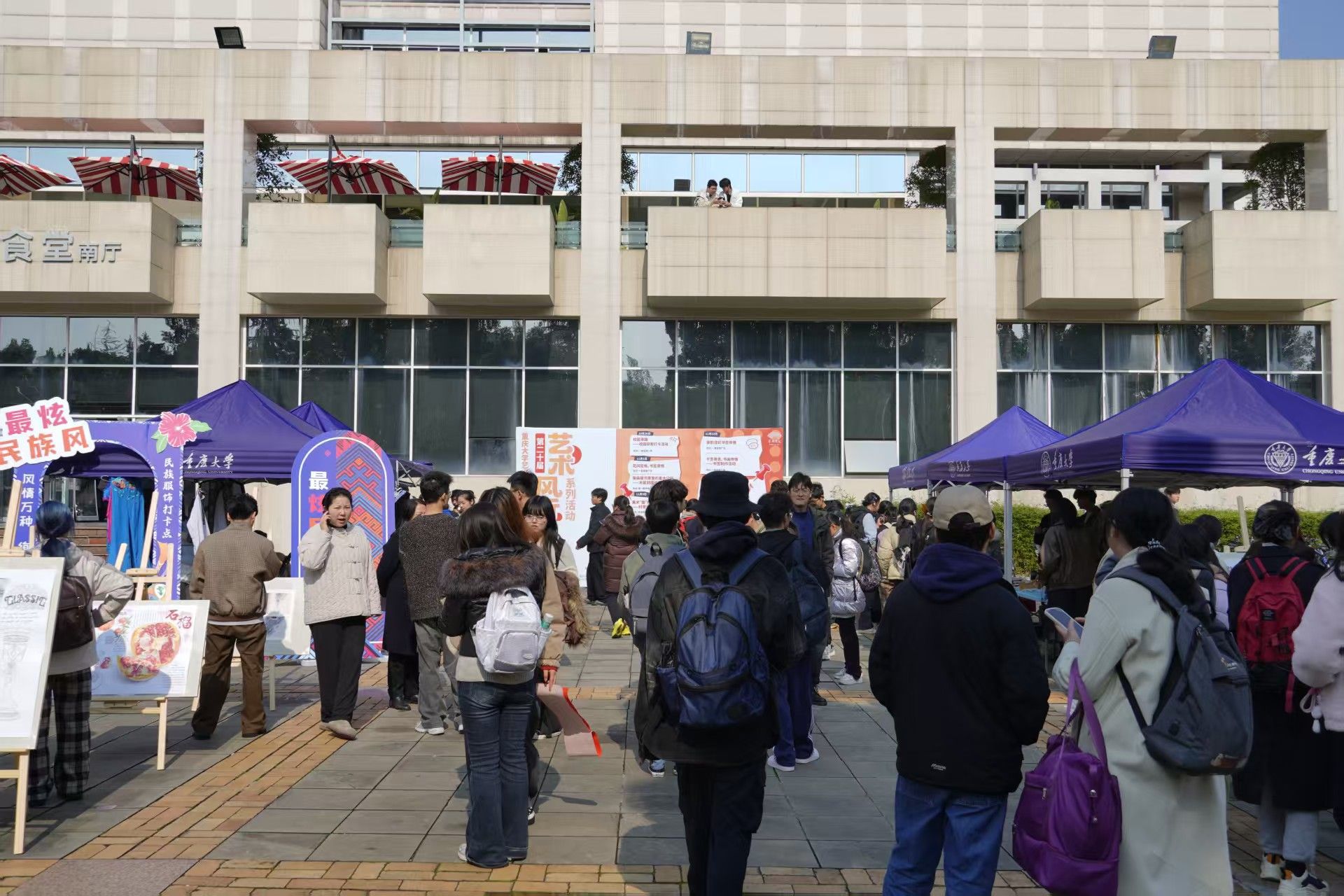 本届“艺术风行”系列活动的重头戏——“美育体验周”将于11月24日至28日在虎溪校园进行,期间推出六场沉浸式活动:音乐舞蹈快闪及现场教学、非遗手作体验、陶艺创作工坊、美学讲座、艺术作品展览等。一食堂南广场两侧快闪舞台每日中午轮番上演“即兴点位”演出;展区集中展示40幅学院学生最新创作作品,涵盖素描、国画、油画、摄影等,吸引大批师生驻足拍照、互动打卡。开幕首日现场参与师生超1000人次。