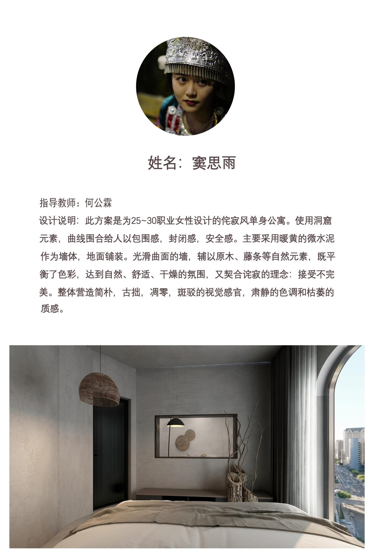 环境设计专业积极组织师生参加了本次艺术设计展,在何公霖、张培颖、夏青老师的指导下,学子们最终斩获多个奖项。其中,李广的《现代有限空间改造项目》;杨雯钦的《“共生”后疫情时代住宅空间功能探索》;刘艺萌和曲晓彤的《重庆印象——大学中央公园设计》;翟雨佳的《AMING别墅》荣获一等奖,万柯和强奥的《侘寂空间》;窦思雨的《穴居》;郭懿娴、董桢园和周乐天的《俯仰有别,与古为新》;黄小芮的《雅舍》荣获二等奖。