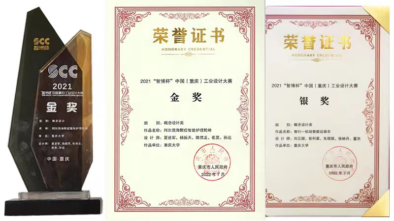 工业设计中心积极组织师生参加本次大赛,结合科研项目与设计实践产出,选送作品近60件,其中13件作品入围终评,最终《阿尔茨海默症智能护理轮椅》获概念设计类金奖,《磁性液体演示仪科普产品设计》《智行—机场智能运乘车》分获美好生活类、概念设计类银奖,《VR+DT智慧工厂辅助管理平台》《基于FASTAHP组合法的排水管道养护机器人产品服务设计》分获产业服务类、概念设计类铜奖,另有8件作品获得优胜奖。重庆长安汽车股份有限公司设计的“UNI-K系列”汽车,凭借其科幻、简洁的造型体现出设计与制造的高融合水平,获得至尊大奖100万奖金。