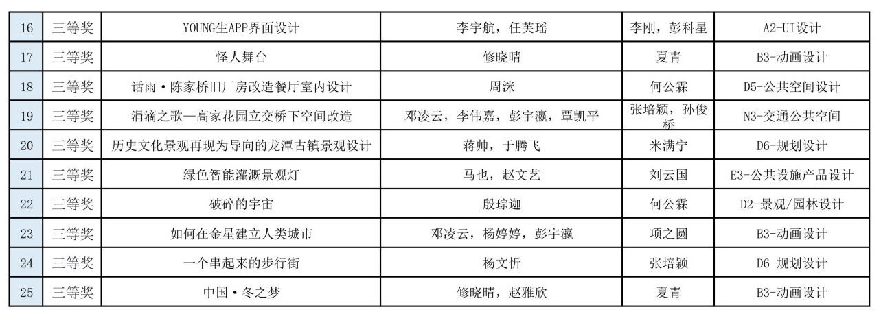 设计学系获得一等奖10份、二等奖4份、三等奖11份,共计25份等级奖作品。2021年8月31日,全国总决赛评审工作也全部结束,获奖作品揭晓,设计学系有7份作品斩获各级奖项,其中一等奖2份、二等奖3份、三等奖2份。