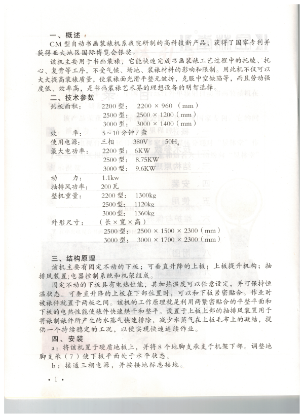 装裱机操作说明书