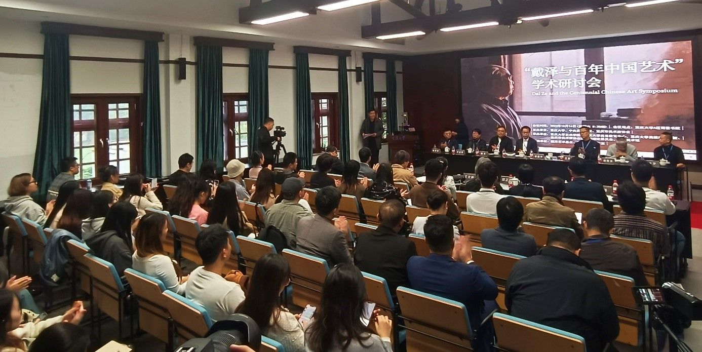 黄宗贤(四川大学艺术研究院院长、教授,四川美术学院艺术人文学院学术院长)作《激昂脉动中的温情诗篇——戴泽在中国现代艺术史上的方位》专题报告:纵观戴泽一生的艺术创作及其艺术贡献,可归纳为五个方面:一是中国艺术现代性的探索者,其人生与艺术经历,几乎与中国艺术的现代转型历程同步;二是现代艺术本土化的推动者,在中国艺术现代化、外来艺术民族化的艺术吁求声和浪潮中开启了艺术进程;三是延绵视觉乡愁的抒写者,用底层叙事、平实语言书写对生命情态、生活境遇的关注和对自然与土地的深沉眷念;四是规范化体系中超越规训者,总体归属于徐悲鸿写实体系,但并不把写实扁平化,而是在扼守写实原则的前途下,彰显出鲜明的个性化特征和灵动的书写性;五是现代艺术教育体系的建构者,是中央美术学院艺术教育体系的经历者、参与者、建构者,是中国学校美育社会美育重要的推动者。