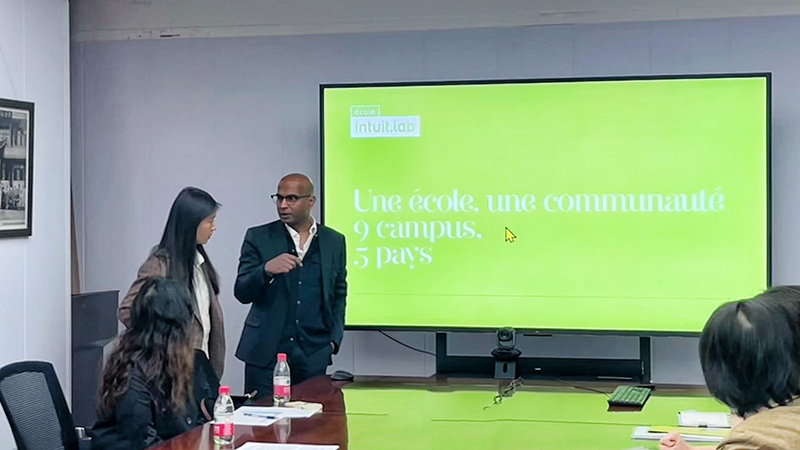 曾祺介绍了法国巴黎高等视觉设计学院的教学资源、国际合作案例以及学校特色,增进了学院师生对该校的了解。与会人员就加强双方合作进行了互动讨论,达成合作共识。