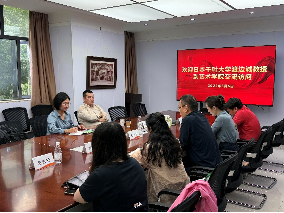 ,开展为期半天的学术交流活动。渡边诚先与学院教师代表进行座谈交流,随后在学院报告厅举办设计创新专题学术讲座,最后参观了学院本科生及研究生工作室,深入了解444咖啡