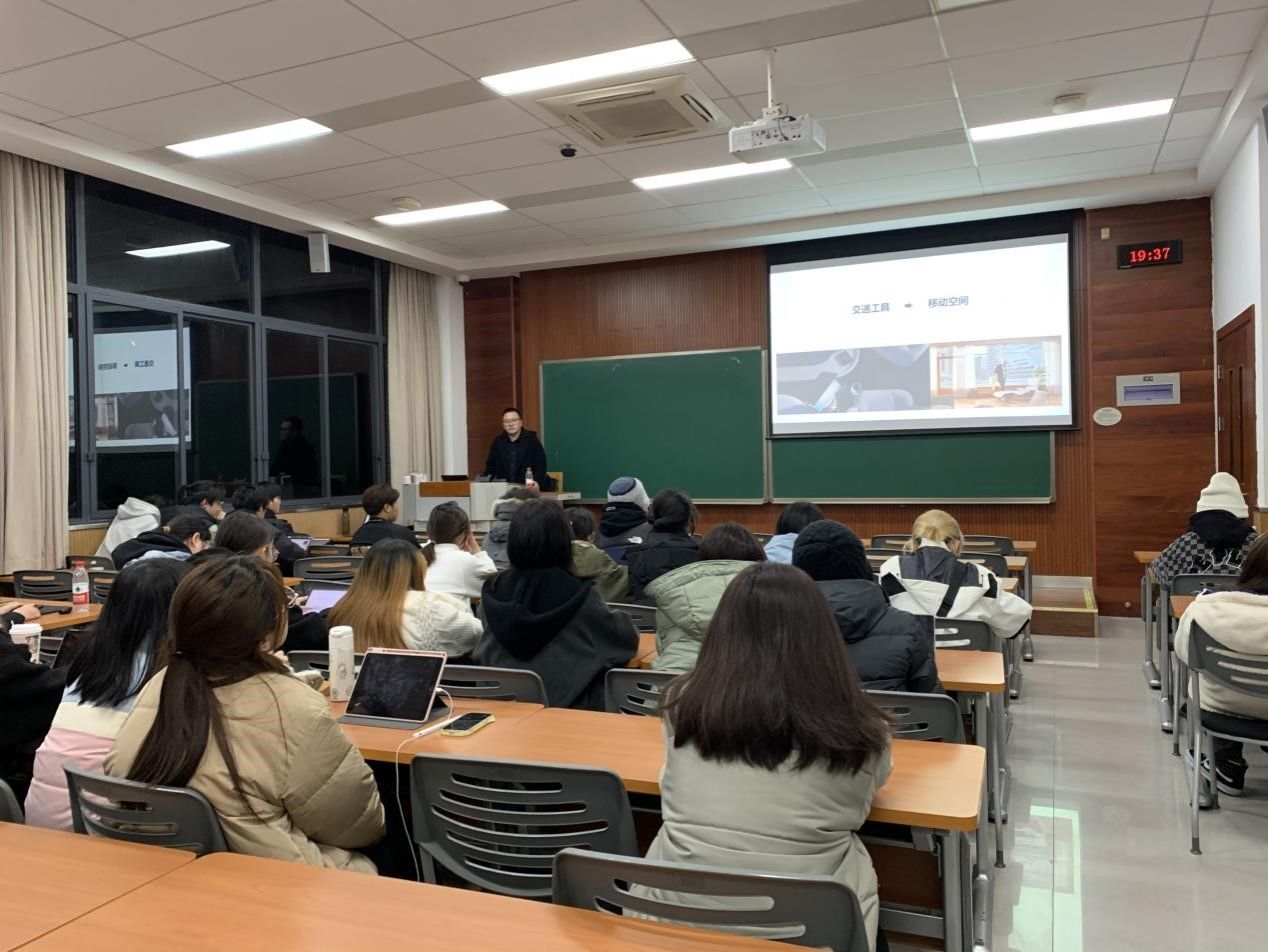 2011届校友,现任赛力斯汽车前瞻设计部部长。他以《你想成为怎样的设计师》为题,以通俗易懂的语言对当前的汽车设计行业作了一个整体的介绍,并分享了目前的设计趋势和前沿设计,以赛力斯汽车为例,从前瞻板块、创意板块、感知板块、塑性板块、管理板块五个板块介绍了汽车的设计流程,重点解释了策略设计师、创新体验设计师、概念设计师等不同方向设计师的工作职能内容和优势,强调了逻辑能力、归纳能力、审美能力在当前就业市场中的重要性。