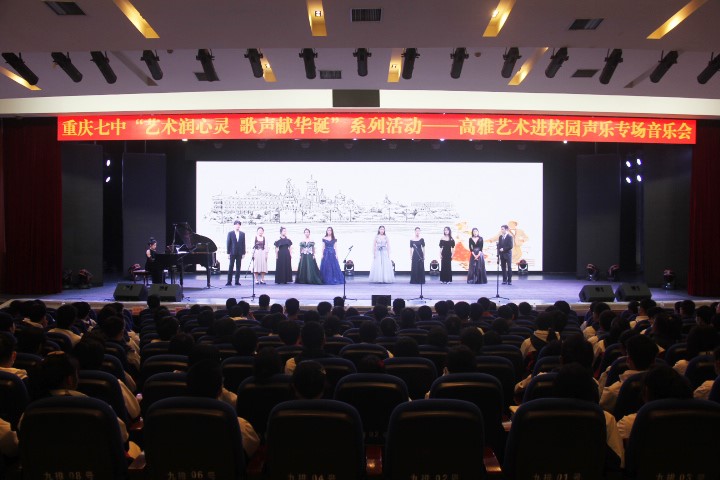 音乐系主办的“‘音’你而美,‘育’见未来”高雅艺术进校园专场音乐会首站在重庆七中东川讲堂拉开帷幕,为学生们带来了一场“视听盛宴”。444咖啡