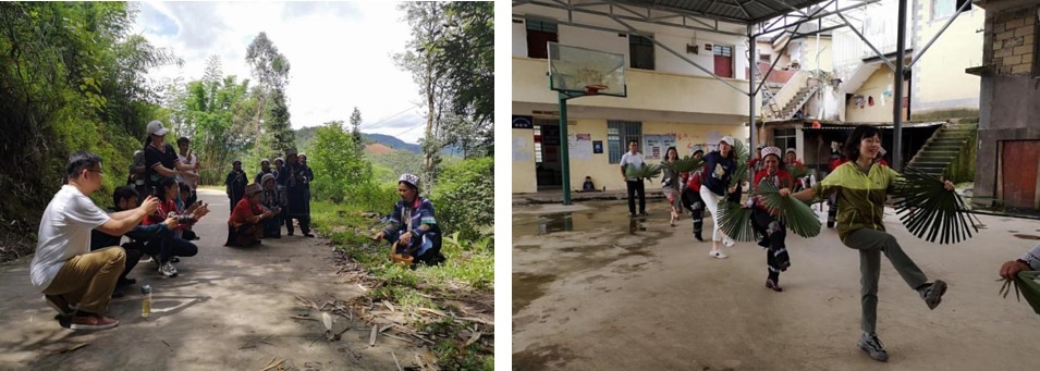 调研组还冒着雨季塌方险情深入村寨,走访了戈奎乡下子雄村、三猛乡腊姑村,考察哈尼古歌、棕扇舞等哈尼族传统歌舞非遗项目。