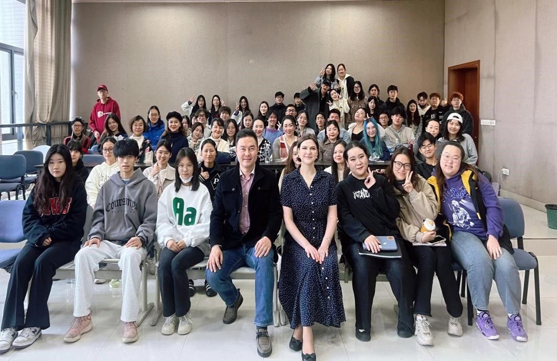 音乐系师生开展学术交流活动。活动由音乐系主任肖玲主持,副主任喻思言担任翻译,音乐系全体师生参与。