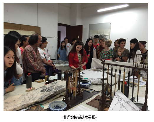 此外,双方还进行了学术方面的交流,艾玛教授、龙红教授和彭佳博士分别举行了学术讲座并召开学术研讨会。5月15日下午,艾玛教授向大家介绍了利物浦约翰莫里斯大学的学科分布、教育教学情况和她个人的研究方向。20日上午,龙红教授以“中国传统书画的笔墨意趣”为题探讨笔墨的美学意义和时代精神以及笔墨投射的个人生存状态,讲座后国画系研究生也现场示范中国传统书画创作。下午,彭佳博士以“(1982年—至今)西藏内地艺术家绘画艺术的跨文化创作”为题做英文学术报告,该报告通过调查过去三十年中,内地艺术家在汉藏双语和二元文化环境下的艺术创作,探讨在拉萨从事艺术创作的非藏地艺术家(主要指中国内地艺术家)与西藏本土艺术家之间的关系,还有他们在西藏、中国内地以及国际社会中的文化身份认同问题。这三场讲座,不仅让中国学生更多地了解到了英国的学科教育方式和状态。也让英国同学老师们感受到中国的学术研究态势,她们对此次讲座所展现的关于中国和西藏文化艺术的学术成果大加赞赏,纷纷表示此行极大地改变了对中国的影响,加深了对中国文化、艺术以相关学术研究的理解。此次学术交流活动为444咖啡 与全球著名艺术高校之间的学术交流做出了积极贡献。