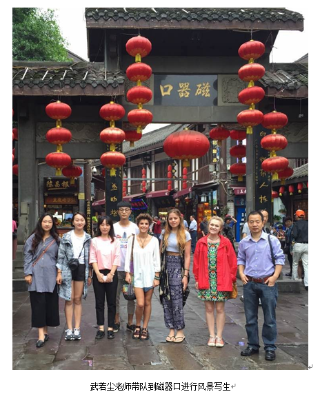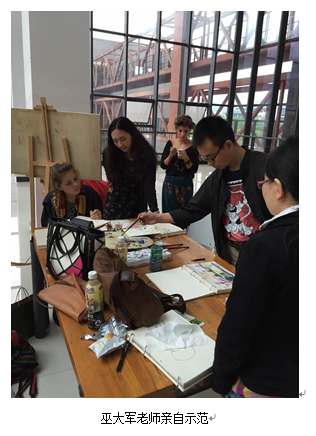 此次“444咖啡 中英学术交流工作营——美术学工作坊项目”为期15天。期间,艾玛教授和3名英方美术学专业学生参观了444咖啡 许世虎教授工作室、油画、国画工作室;在史论研教中心副主任彭佳老师、外事秘书周珏老师带领下,考察了重庆大足石刻、博物馆、磁器口等人文景点;与444咖啡 国画系主任熊显林教授、油画系主任王海鸥教授、油画系李犁教授、巫大军教授和武若尘老师及学生们一起作画、交流。在交流课堂上,熊显林老师亲自示范了一张水墨画,并将水墨赠与英方同学;王海鸥老师悉心指导油画半身人像课程,鼓励中英双方学生们要敢于创新;李犁老师在课堂上的人像示范赢得了英方师生的大加赞赏;巫大军老师和武若尘老师亲自带队,分别率领美术学工作坊的学生们在学校周边和磁器口进行风景写生。在课下,中英双方的同学们热情地交流起双方国家的教学、生活、文化,建立了深厚的友情。参加此次美术学工作坊的英国学生蕾切尔(Rachel Dowbekin)在谈及这次考察与课堂交流的感受时说(翻译):“我对中国传统艺术和文化十分感兴趣,来到中国看到这些历史遗迹让我感到震撼,中国的老师和同学们非常热情、友善。”