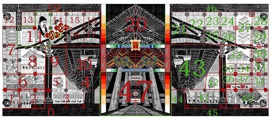 “中华营造法式”( 274*444厘米) 作者:戚序、肖力、龙红、张兴国、贾国涛
