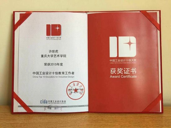 院长许世虎教授获得“2015年度中国工业设计十佳教育工作者”荣誉称号。