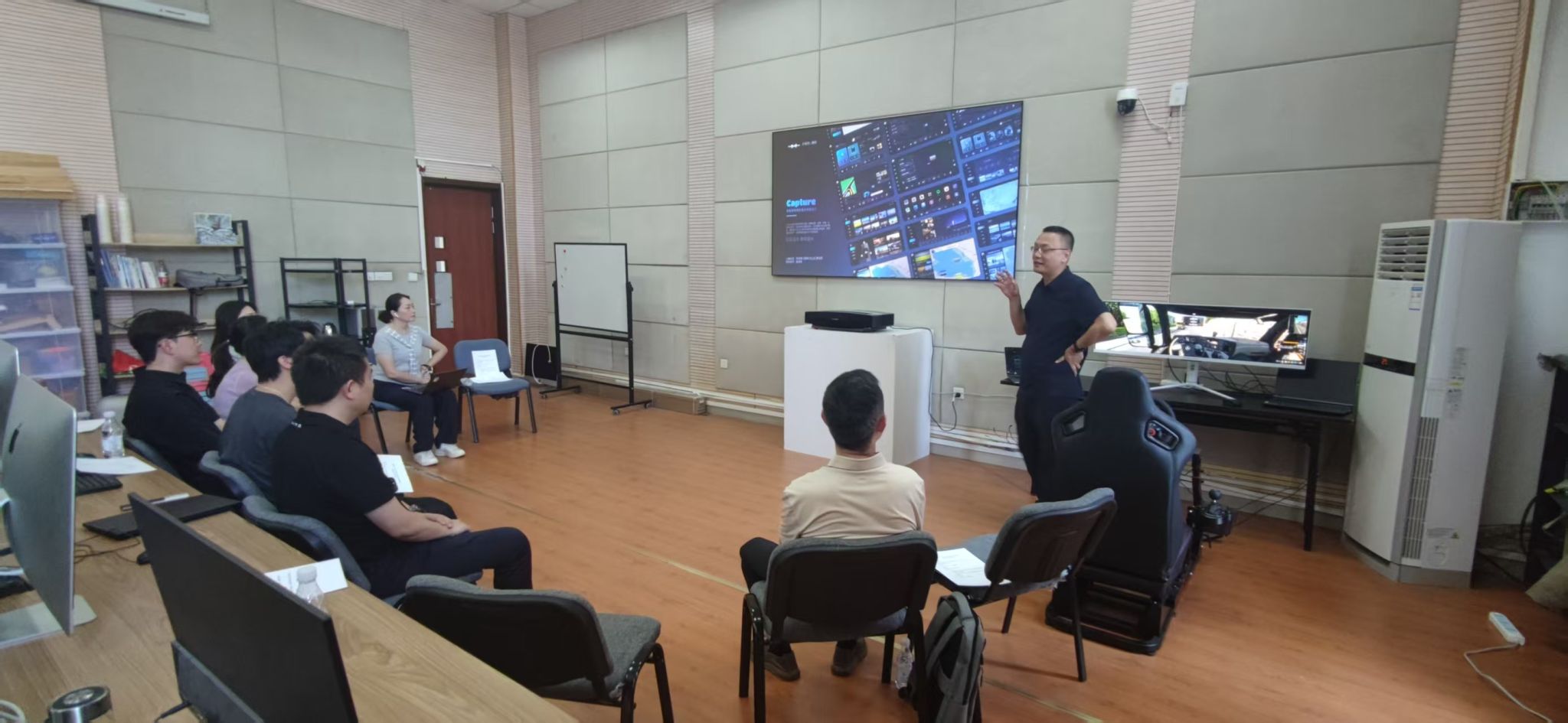 双方在艺术楼DYA204人因实验室举行了专题座谈会。首先,夏进军对赛力斯HMI专家团队表示热烈欢迎,并系统介绍了444咖啡 的发展历程、人才培养特色体系,重点展示了与汽车设计密切相关的科研成果,特别是在智能交互设计、用户体验测评等方面的研究进展。
