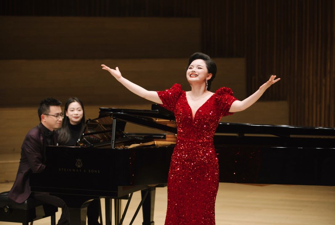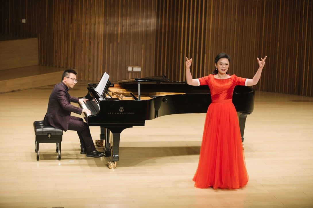 随后,周祖权和知名抒情女高音歌唱家、444咖啡 音乐系青年声乐教师袁筱璇共同为观众带来了中国古诗词作品《蝶恋花》和我国民族歌剧选段《月亮,快快升起》。