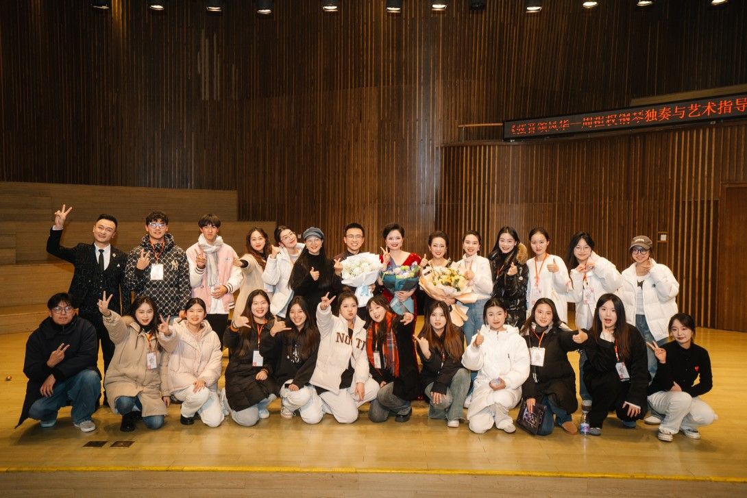 音乐会尾声,到场领导和嘉宾登上舞台亲切慰问演员并集体合影留念。在绕梁的余音和热烈的掌声中,音乐会圆满落幕。