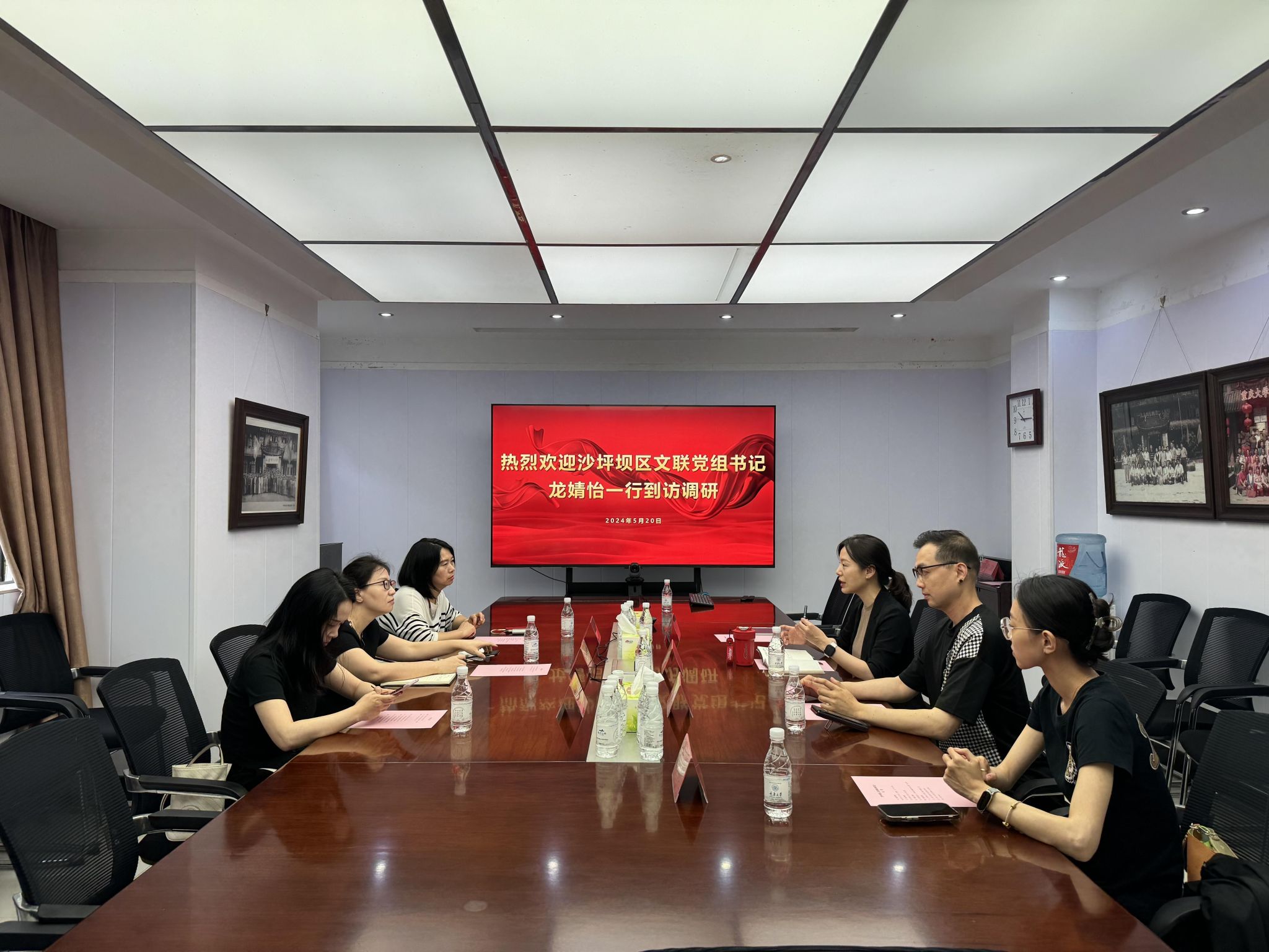 此前,沙坪坝区文联党组书记龙婧怡,沙坪坝区文联党组织成员、副主席石芸一行于5月20日到学院调研,学院副院长彭小希陪同调研座谈。双方深入探讨了深化协同合作,强化沙坪坝区舞蹈精品打造、新媒体舞蹈传播以及通过优质舞蹈影像创作助力城市形象宣传等事项。