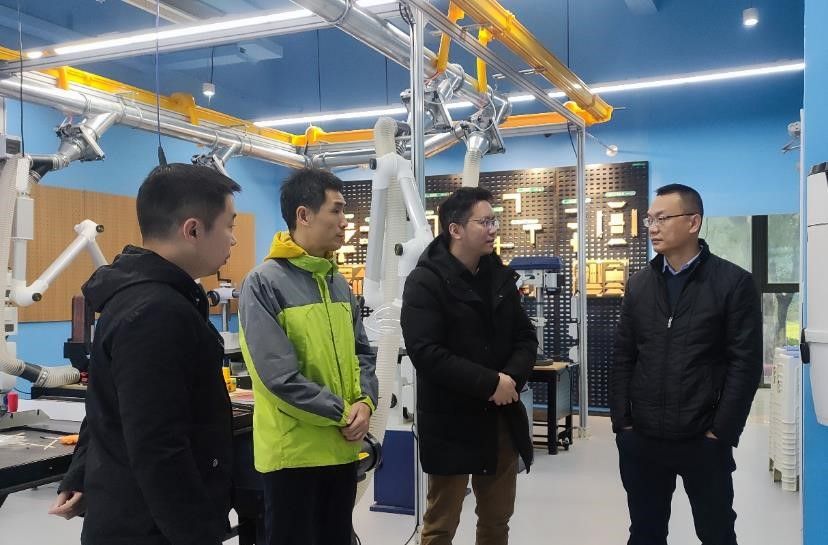 实验室建设,提高实验室管理水平,2023年12月1日,副院长夏进军带队,实验员张新翌、黄彦一行赴学校学生交叉创新中心考察调研。