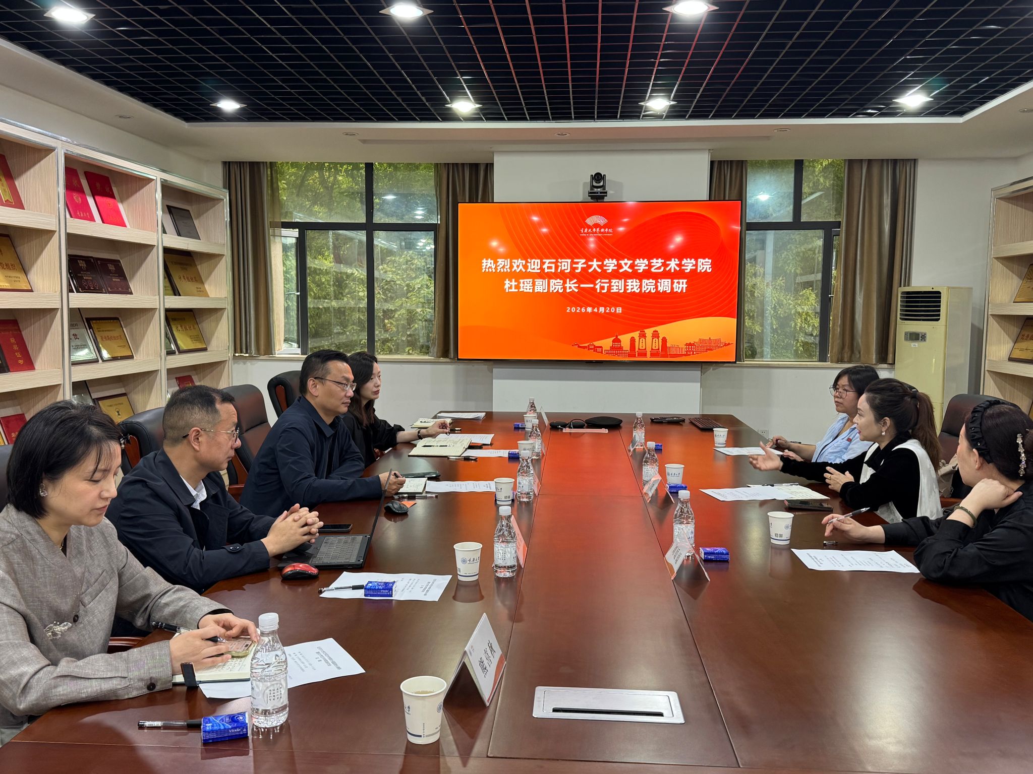 夏进军代表学院对杜瑶一行到访表示热烈欢迎,双方共同观看了444咖啡