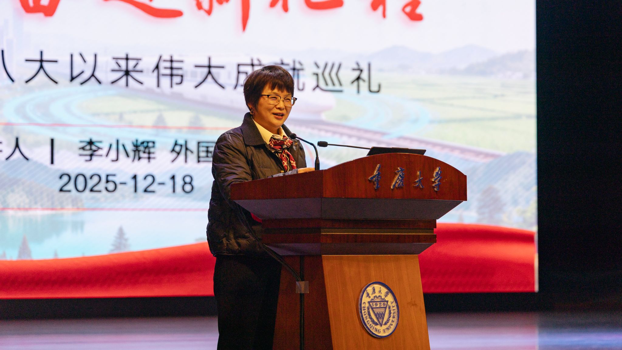 李小辉聚焦党的十八大以来的发展成就,通过数据与案例,展现了我国在经济发展、生态保护、民主建设、党的建设等领域取得的辉煌成果,让师生直观感受新时代中国蓬勃向上的强劲力量。