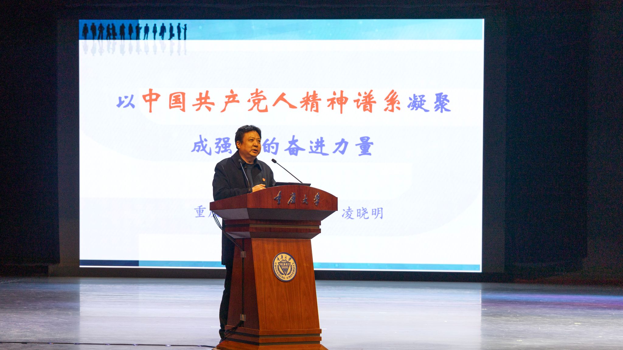 凌晓明以“科学家精神”为例,聚焦时代新人培育核心目标,深刻阐述了如何依托精神谱系凝聚培根铸魂的引领力量,引导广大师生自觉践行社会主义核心价值观,汲取奋进动力。