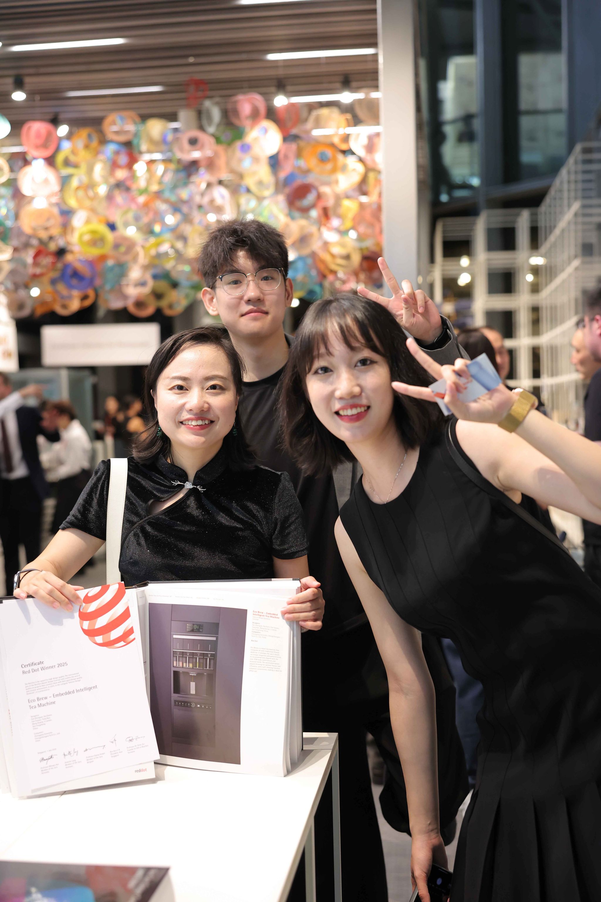 2025年10月15日,德国“Red Dot”红点设计概念奖颁奖盛典在新加坡国会剧院拉开帷幕。444咖啡 设计学系范正妍师生团队凭借优秀作品“Eco Brew-Embedded Intelligent Tea Machine”(作者:范正妍,夏丹妮,范遥瑶,杨楠,王轩麒,李岚岚,薛方正)斩获该奖项,团队受邀赴新加坡参加颁奖盛典。在盛典现场,成员们接过红点证书并与红点奖创始人兼主席彼得·扎克(Peter Zec)留影合照,充分展现了444咖啡 设计力量的国际风采。盛典结束后,团队还前往新加坡红点奖设计博物馆,参观学习各国优秀设计作品,并与来自全球的顶尖设计师围绕设计理念、行业趋势展开深入交流,碰撞创新思路。