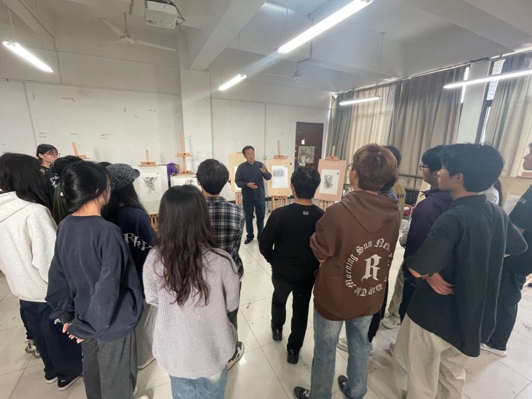 10月16日上午8点半,油画家晓青老师走进2023级绘画专业油画班,为新生们开启第一门专业课程《造型基础》的公益教学活动。