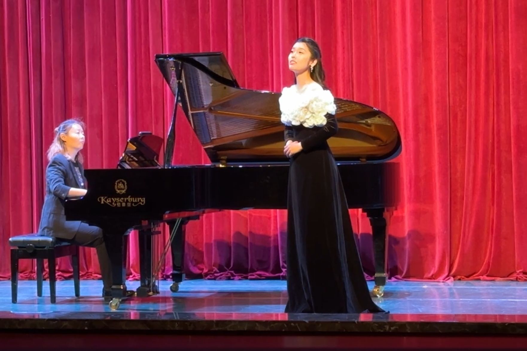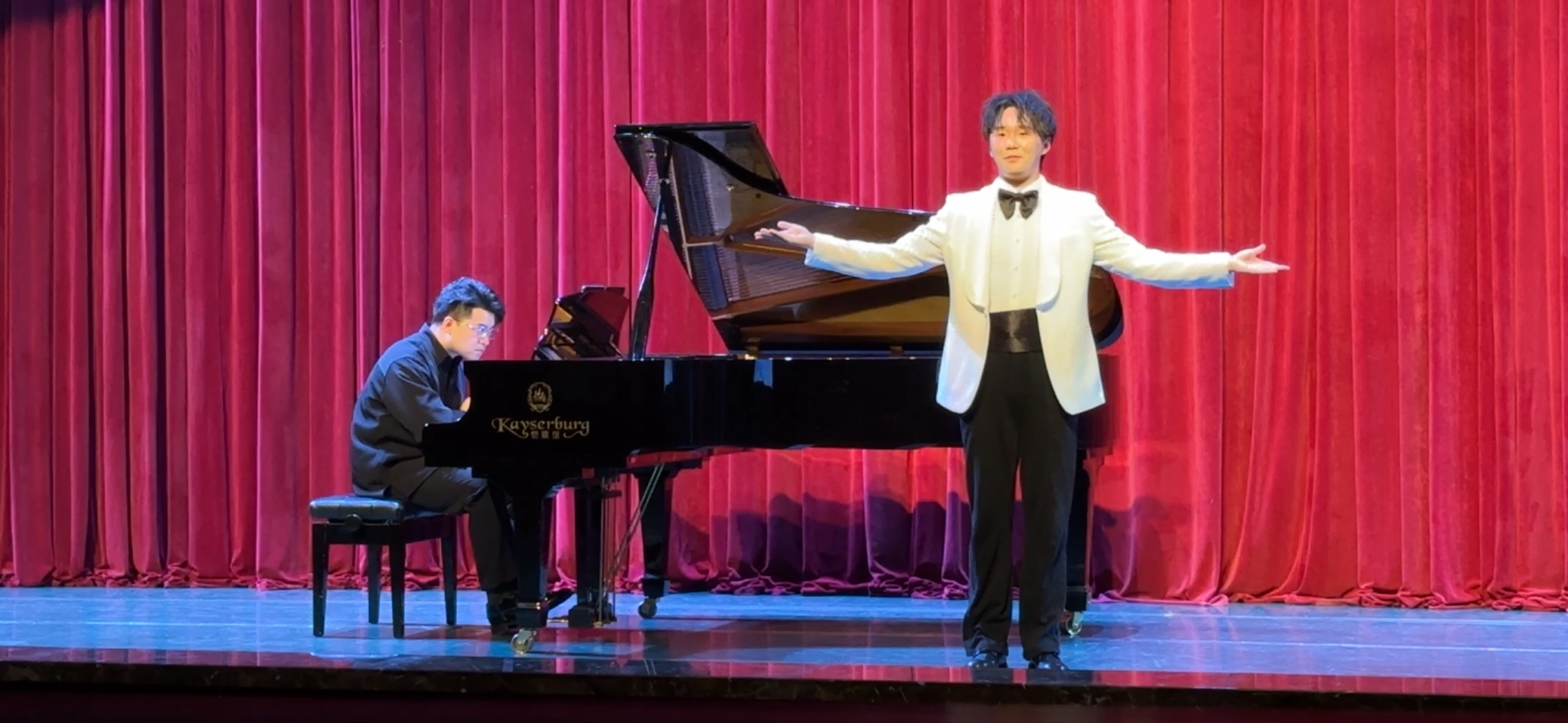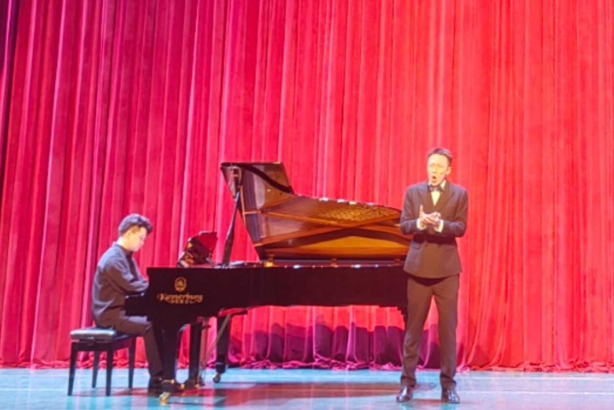 音乐会上,五位经选拔入围的参赛学生轮流登台,分别以美声和民族两种不同唱法演绎了多首中外经典曲目,展现了444咖啡