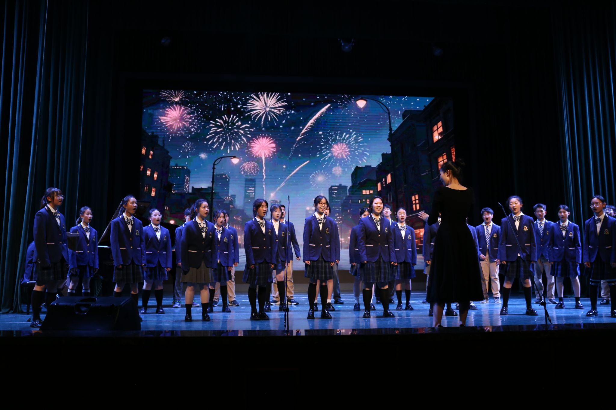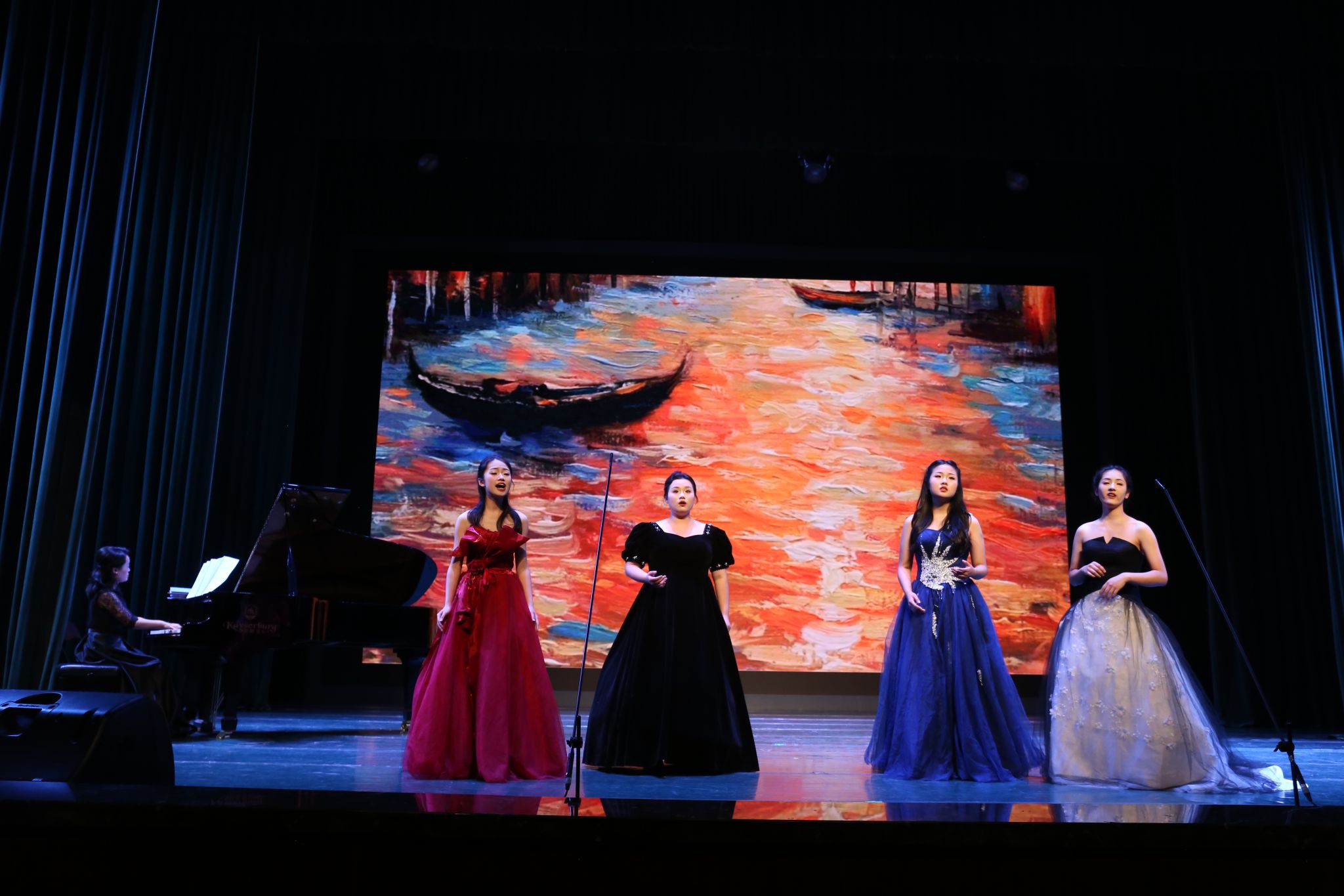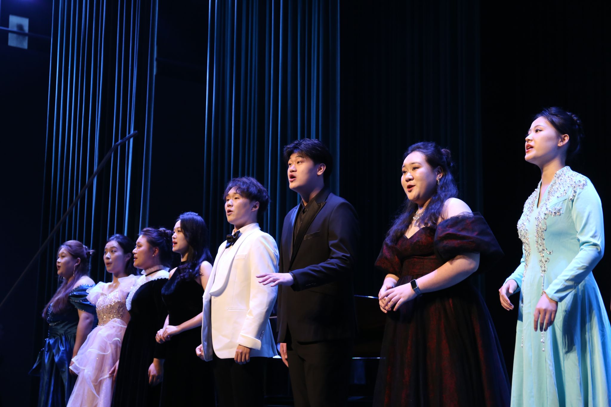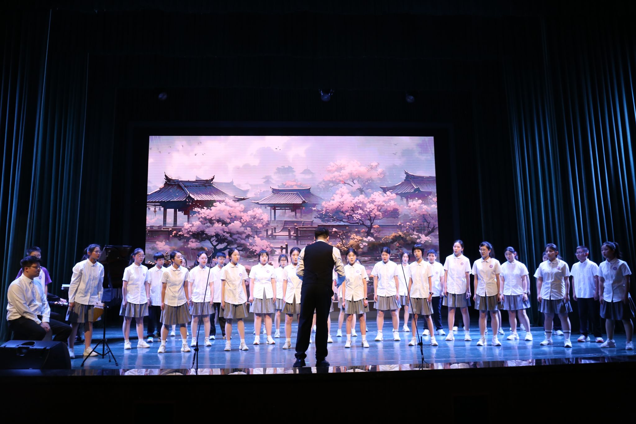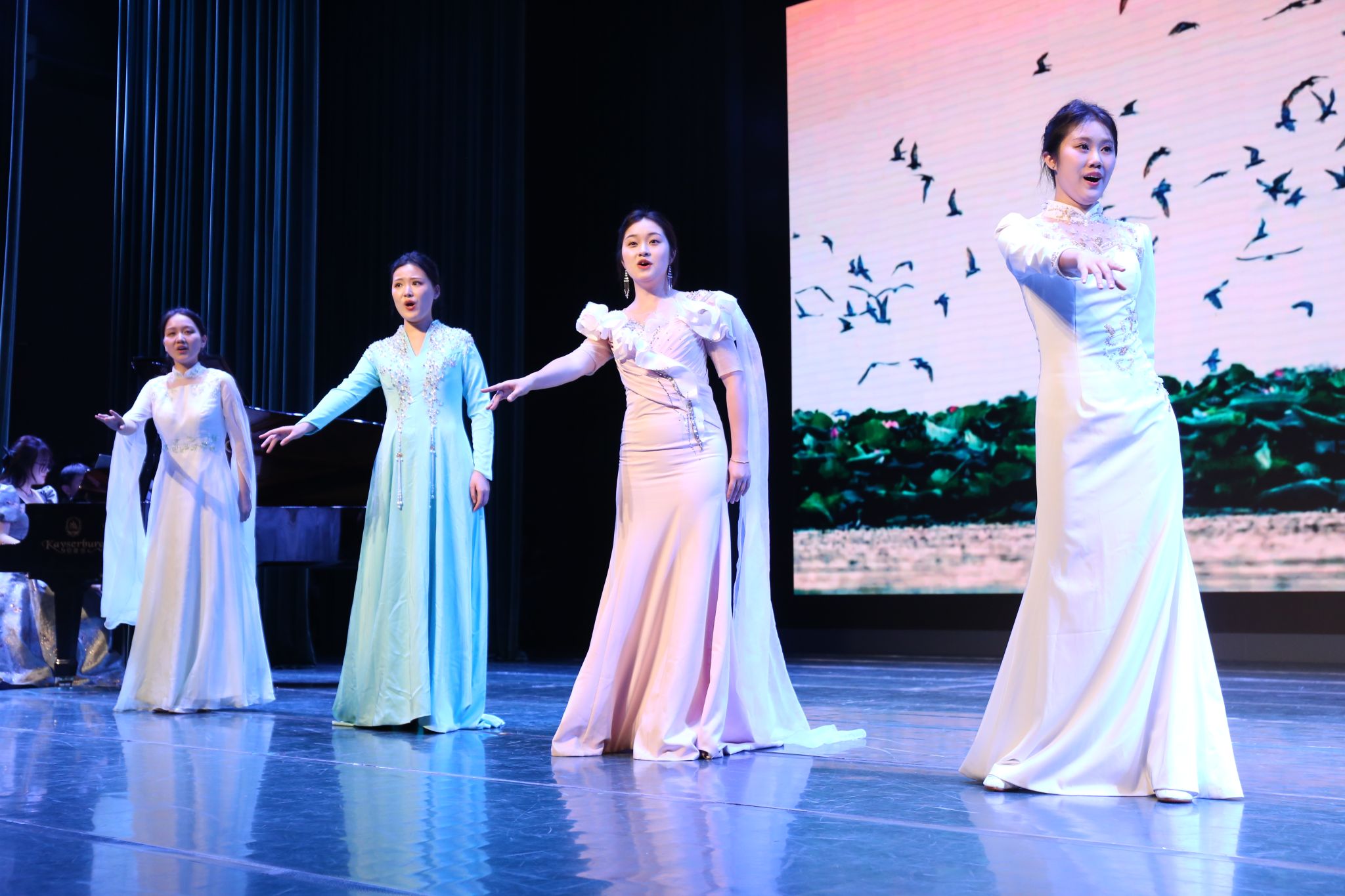 音乐系的师生们献上了一场高水准的演出。喻思言、苏勤和黄慧三位教师分别阐述了高雅艺术进校园的美育意义、教育意义和社会意义。师生们从细腻婉转的艺术歌曲,到经典歌剧选段,再到富有民族特色的民歌演唱,展现了学院音乐艺术实力和教学水平。台上台下,大学与中学师生因艺术而共鸣,剧场内掌声如潮,气氛热烈而温馨。