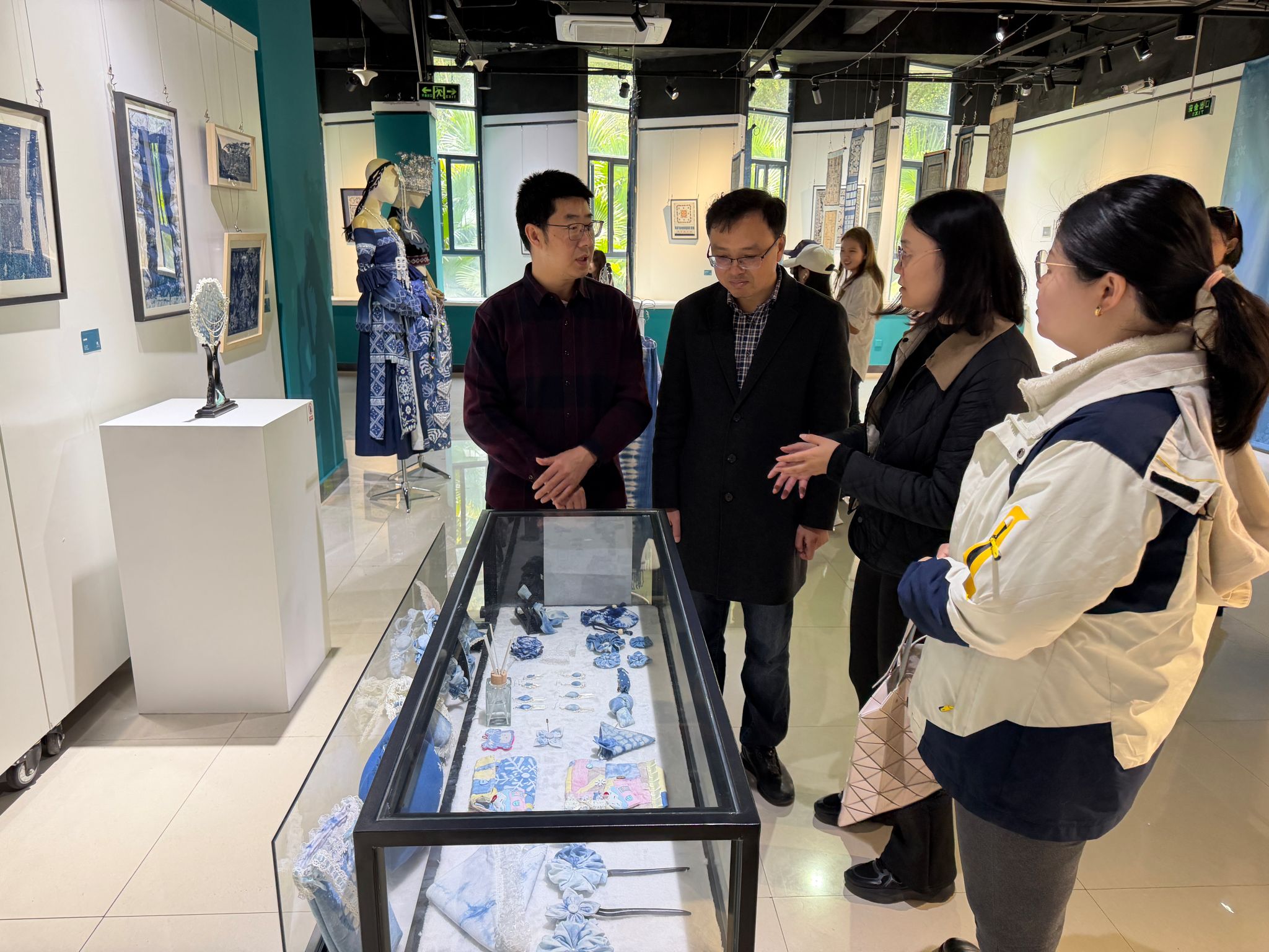 美术学系师生一行来到重庆师范大学美术学院,参观了主题为“青出于蓝·蓝染的叙事与新生”的展览,并在罗晓欢院长的细心讲解下,开展了一场富有深度的集体班会。
