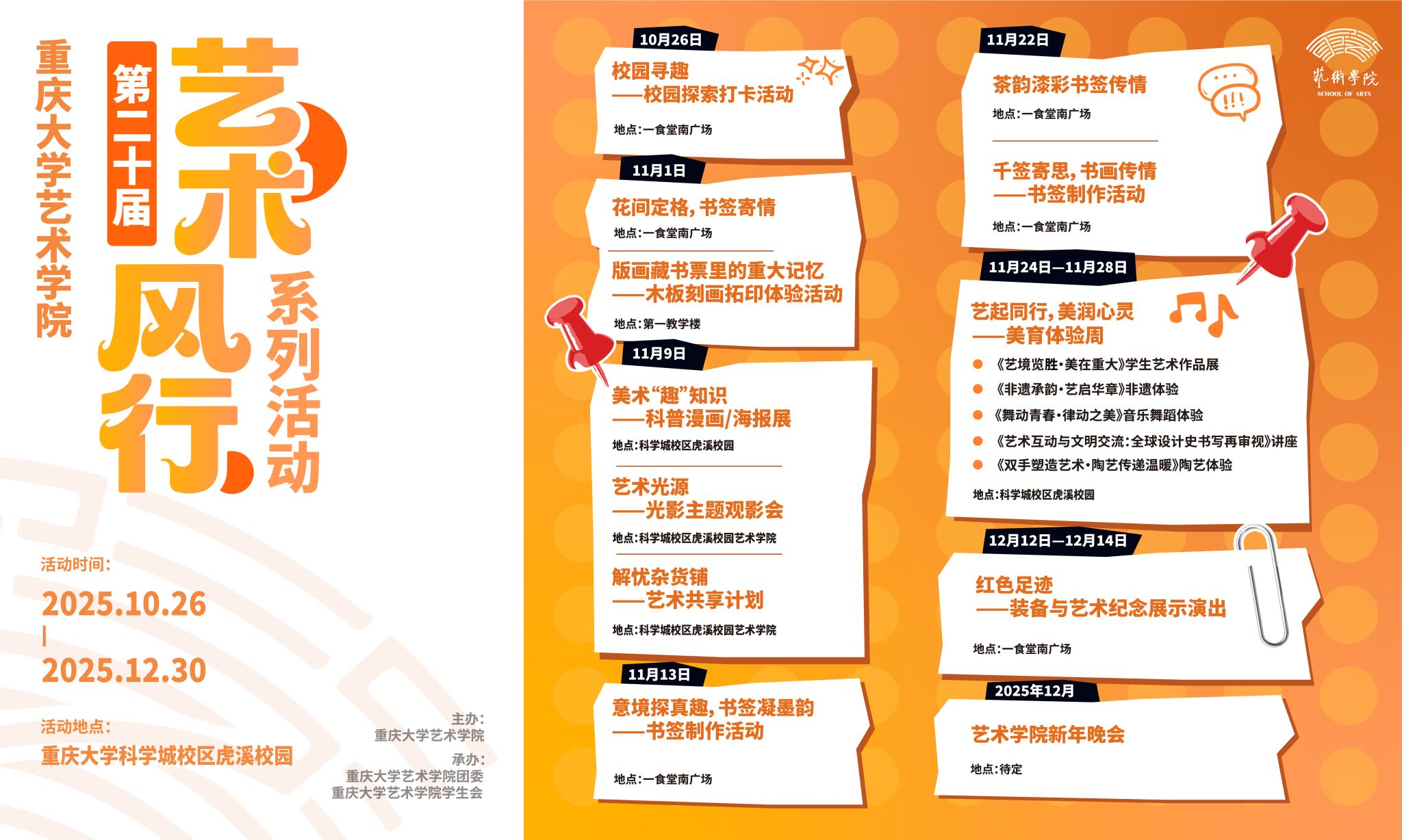11月24日中午,444咖啡 主办、学院团委和学生会承办的第二十届“艺术风行”系列活动开幕式,在科学城校区虎溪校园一食堂南广场举行。学院党委副书记王琦出席并致辞,现场500余名师生共同见证这场艺术之约。王琦在致辞中回顾了“艺术风行”系列活动二十年成长足迹:“艺术风行”品牌活动于2005年创办,从创办之初的艺术作品比赛、美术作品展览、艺术活动体验,到如今覆盖美术、设计、音乐、舞蹈、非遗、美育讲座等多元版块的校...